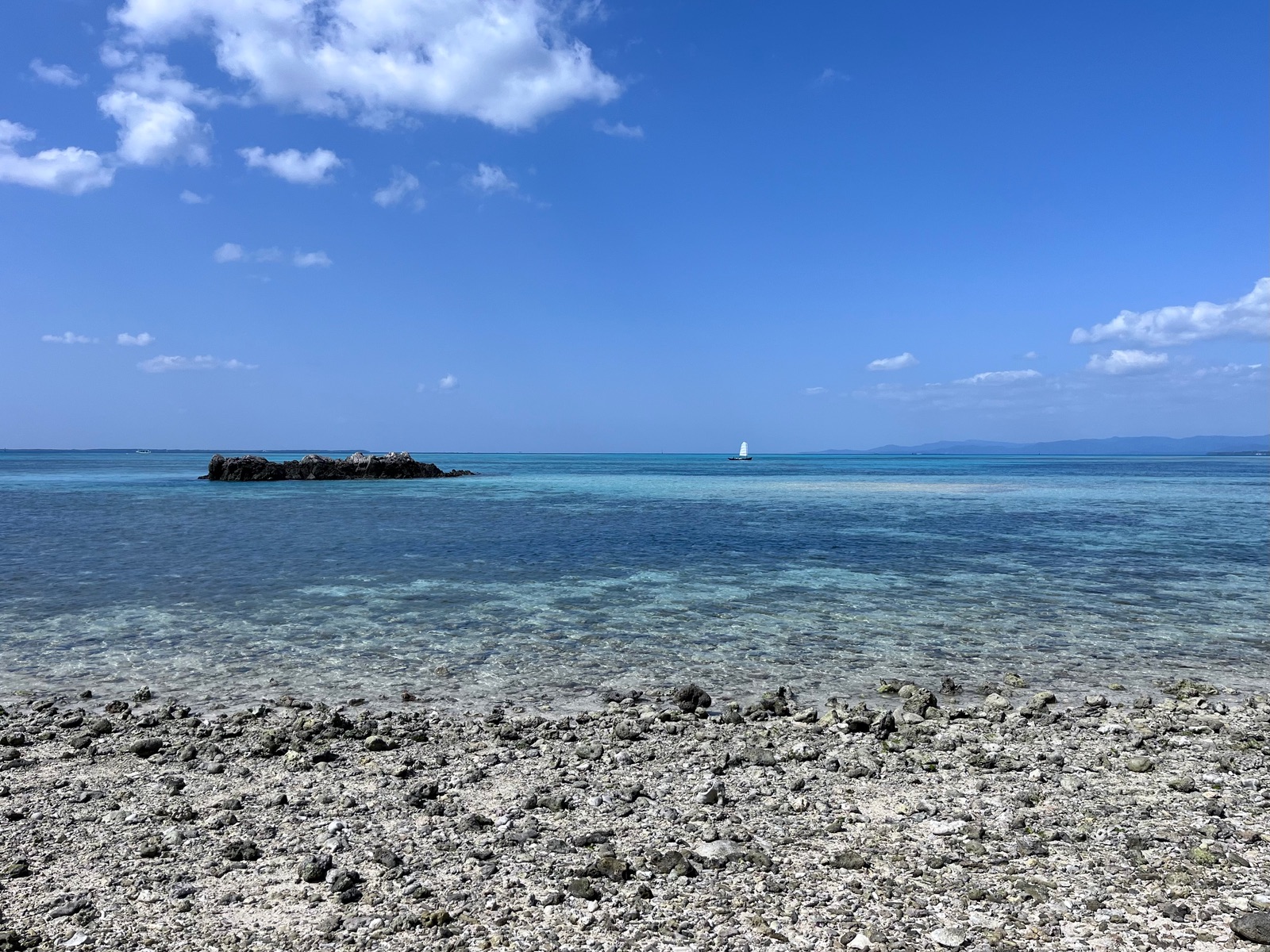 Kaiji Beach - dort gibt es Sandkörner in Sternen-Form. Man kann entweder selbst suchen oder an einem „SB-Souvenirstand“ ein Gläschen Sand für 300 ¥ kaufen. Das Geld schmeißt man einfach in eine Box.