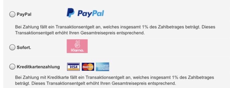 Eben die Anzahlung für unsere Reise im Herbst per Kreditkarte bezahlt. Ohne Transaktionsgebühr. Sehr schön.
