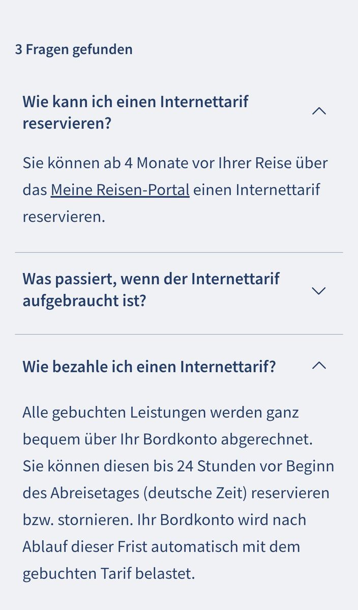 ich benötige mal Euer aller Wissen - wo finde ich denn etwas zu den Internettarifen bei TUI Cruises? Wir waren schon länger nicht mehr mit Mein Schiff unterwegs und nun soll es im April von La Romana nach Mallorca gehen mit der Mein Schiff 1. Nutzt Mein Schiff auch Starlink?