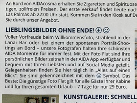 Und hier noch ein Foto aus der Aidaheute vom Anreisetag. Da ist das Angebot für die Fotoflat beworben.
