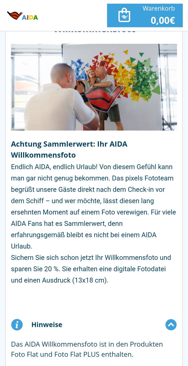 Die Willkommenfotos und die Bilder an der Gangway waren enthalten. Fotos die auf einem Ausflug gemacht wurden auch.