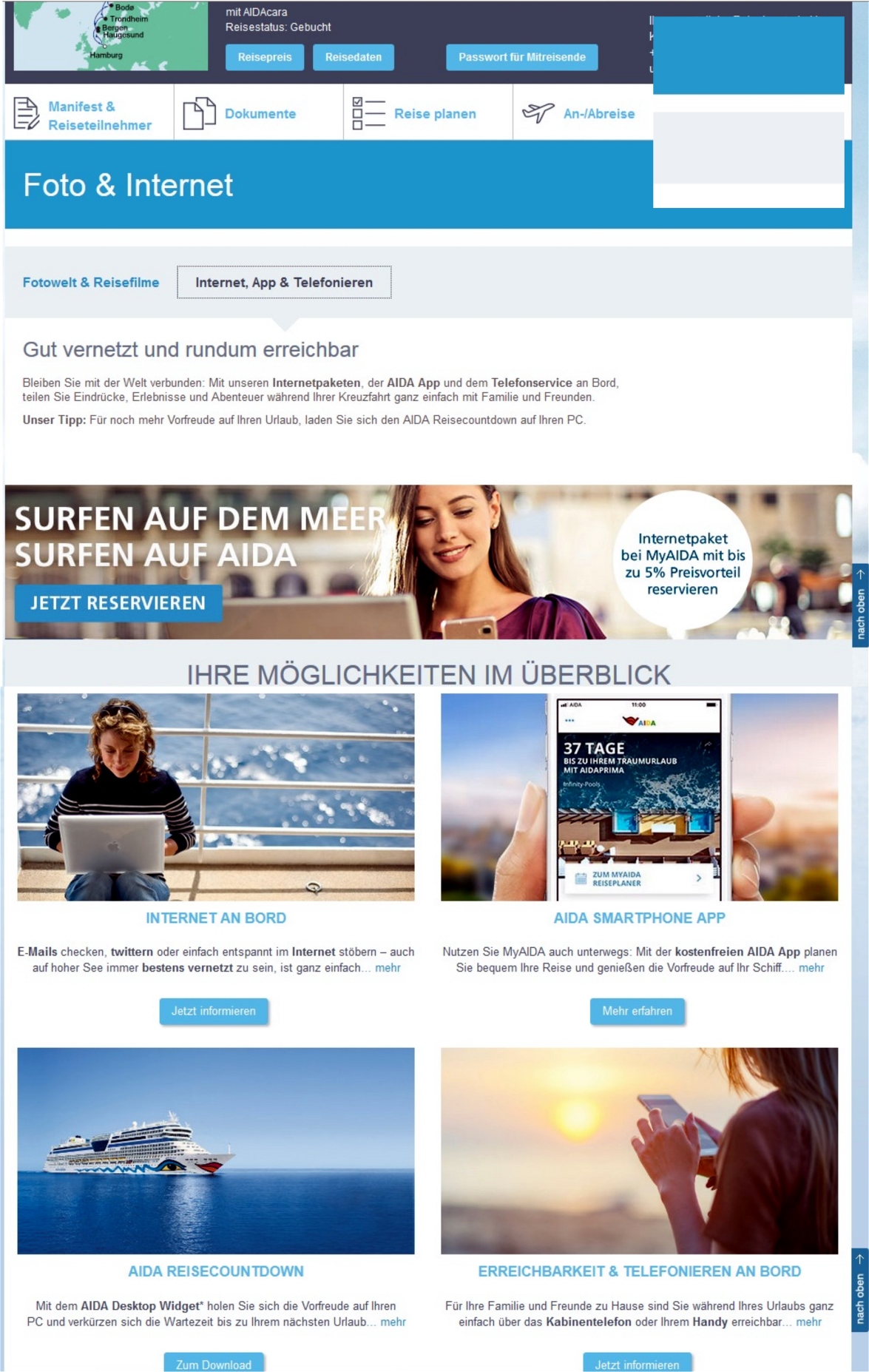 Es ist wohl wichtig, ohne weitere Klicks sofort nach der Öffnung von MyAIDA den Weg einzuschlagen. Denn alle anderen Suchwege führten zu nichts.