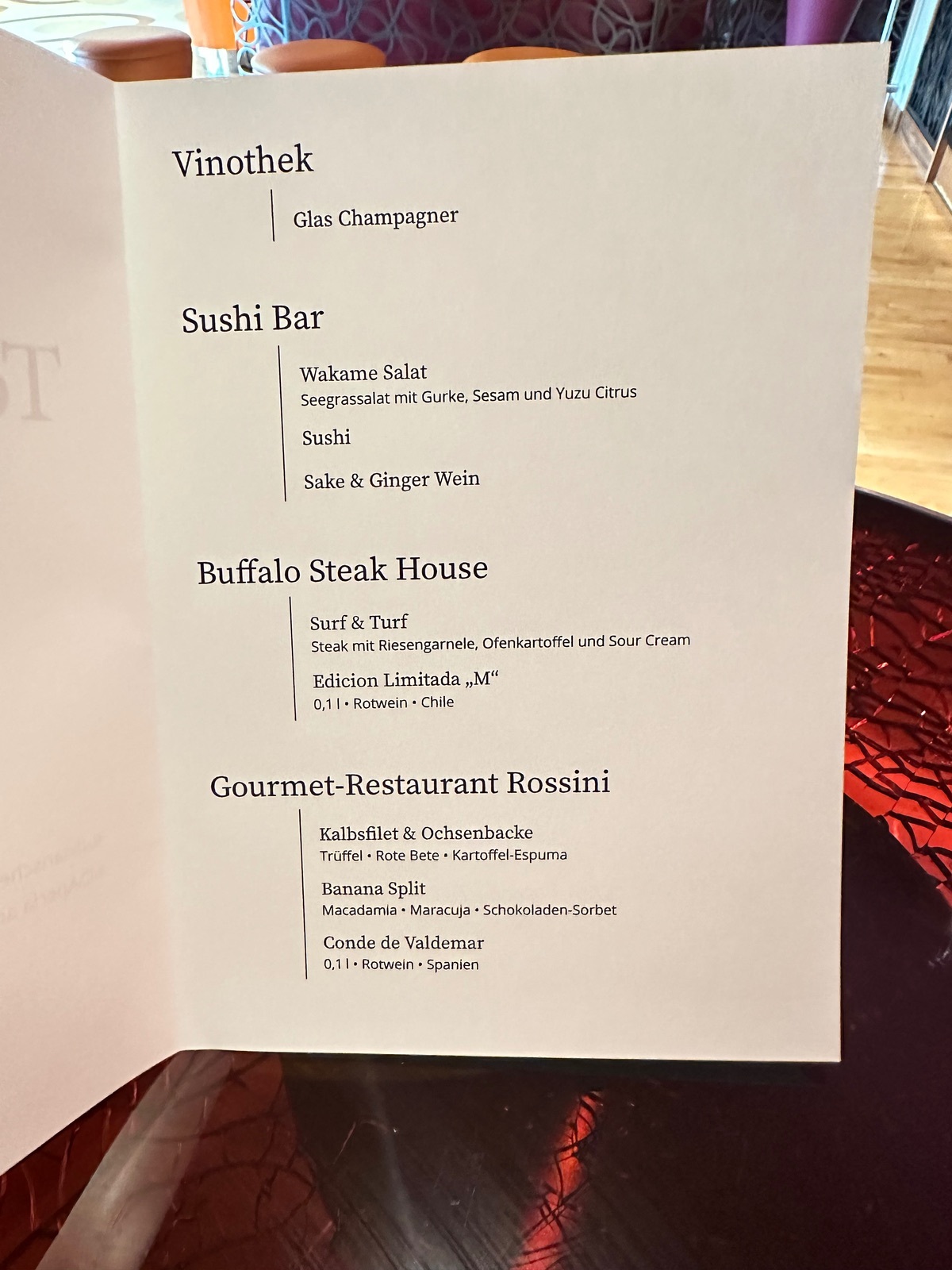 Weiß jemand, wann aktuell auf der Bella Tour de Gourmet angeboten wird? Ist das an einem Seetag?