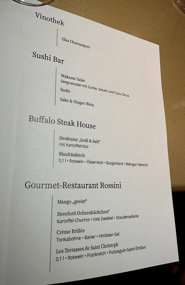 Wir haben die TdG jetzt zweimal gemacht, in 05/2024 und 11/2024. Das Menü war immer gleich und so wie oben dargestellt in 02/2025. Also ist das Menü jetzt schon mindestens ein Jahr gleich.
