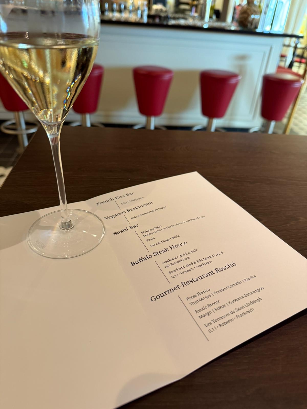 Ich habe alkoholfreien Sekt zum Auftakt und dann alkoholfreien Weiß- und Rotwein im Verlauf des Abends als Alternative bekommen 🤩.
