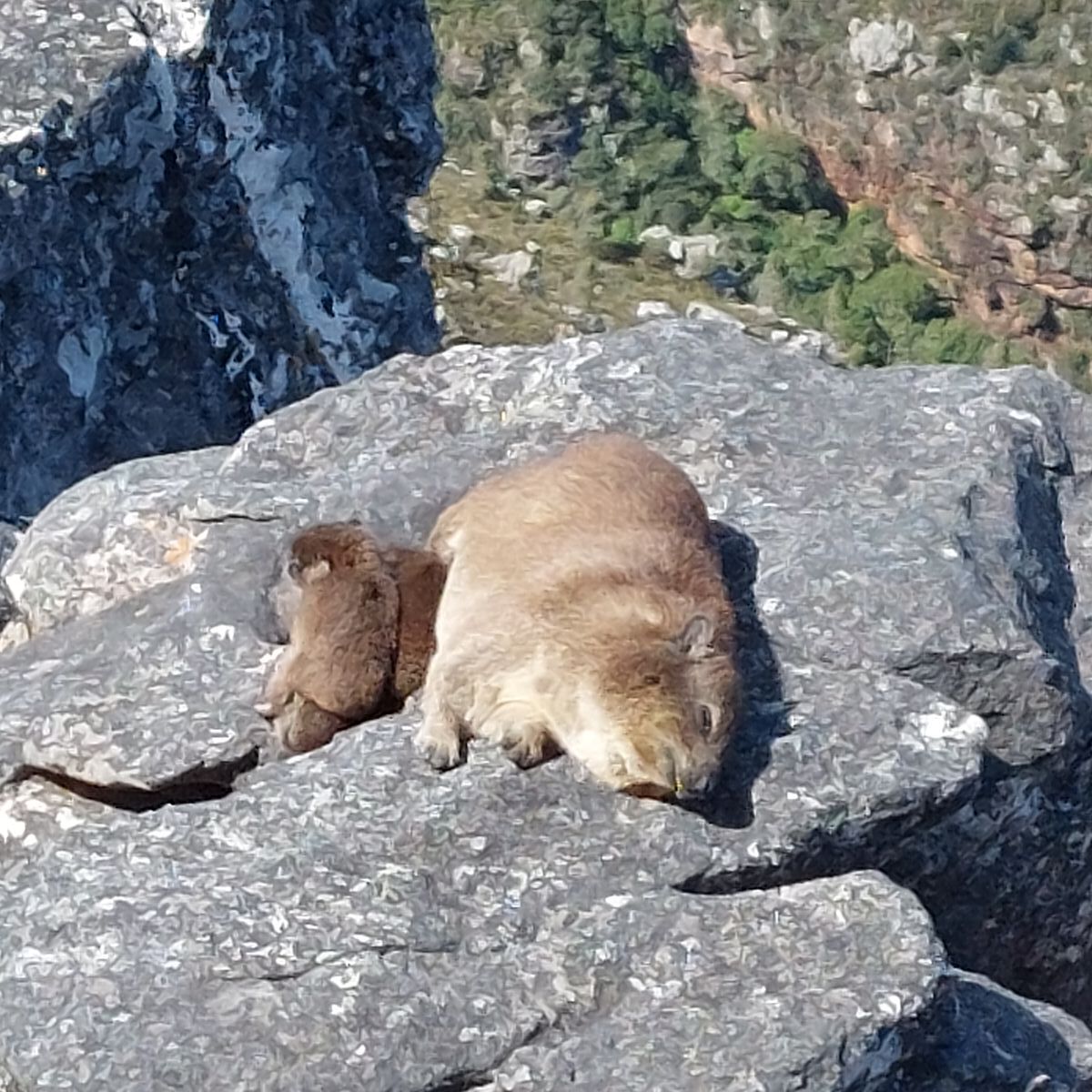 Und oben habe ich auch eine Klippschliefer-Mama live bei der Siesta in der Sonne gesehen