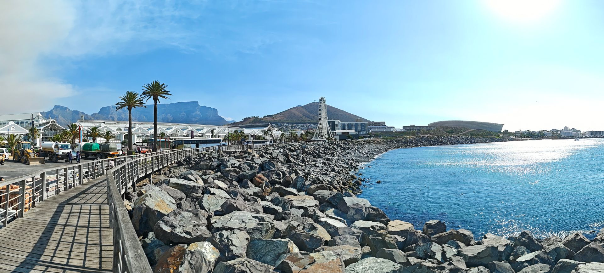 Nach der Verabschiedung von Christiane, genehmigten wir uns vier noch eine Runde, der Aperol war sehr lecker. Nun hieß es aber auch für uns, uns Richtung Schiff auf den Weg zu machen. Vorbei an den Robben und durch die schöne Waterfront. Der Tafelberg war stets unser Begleiter.