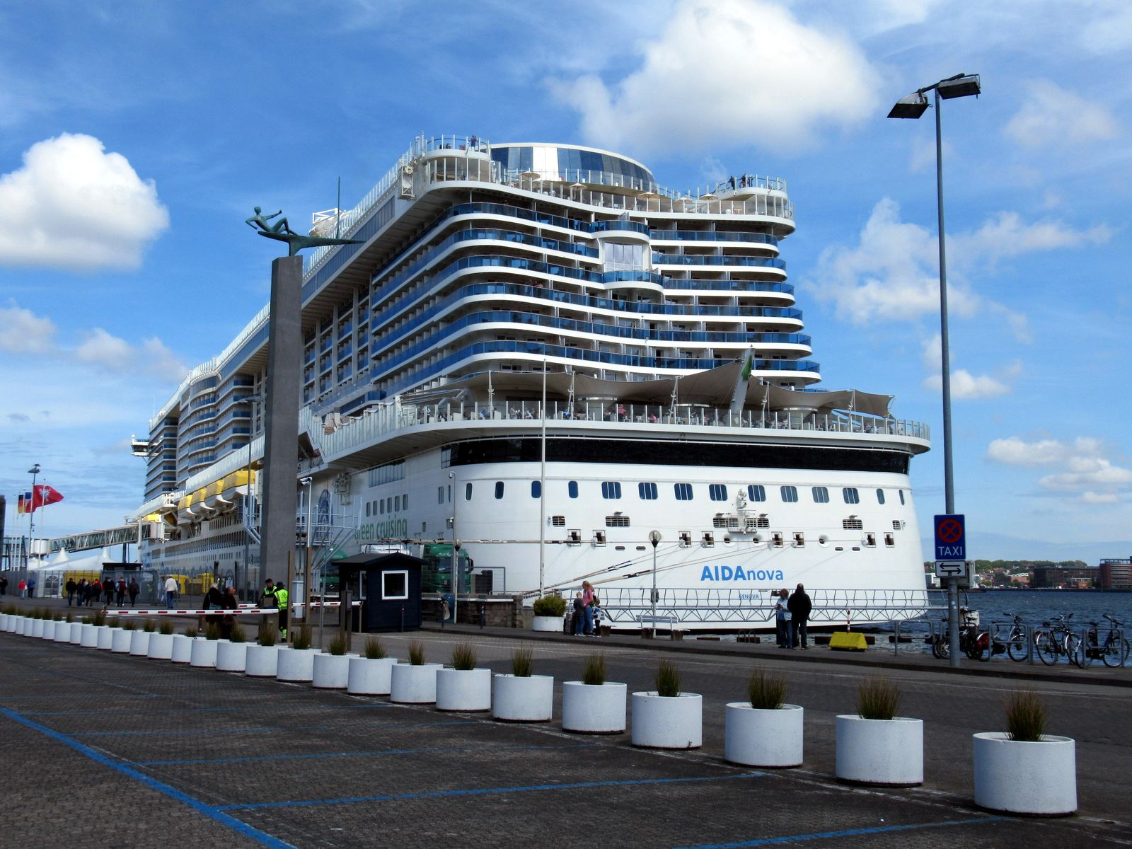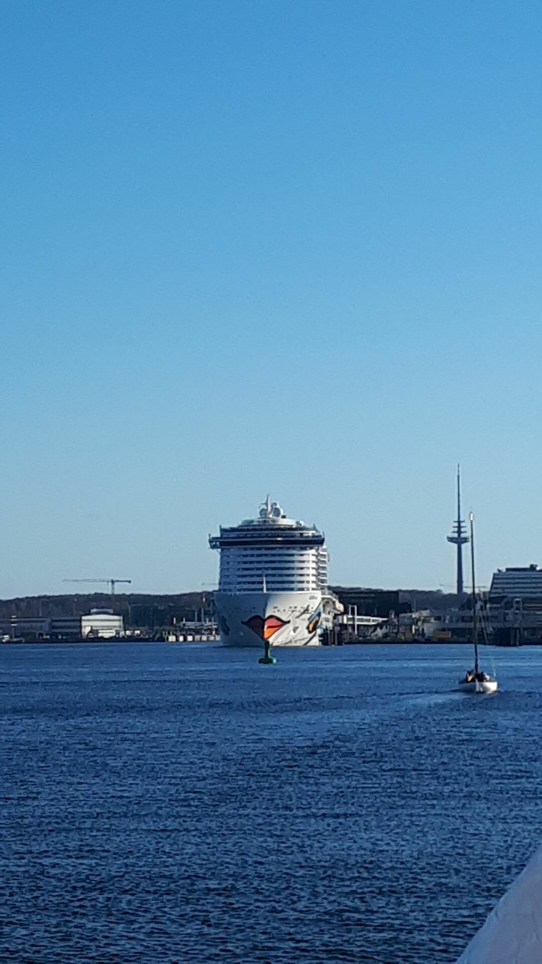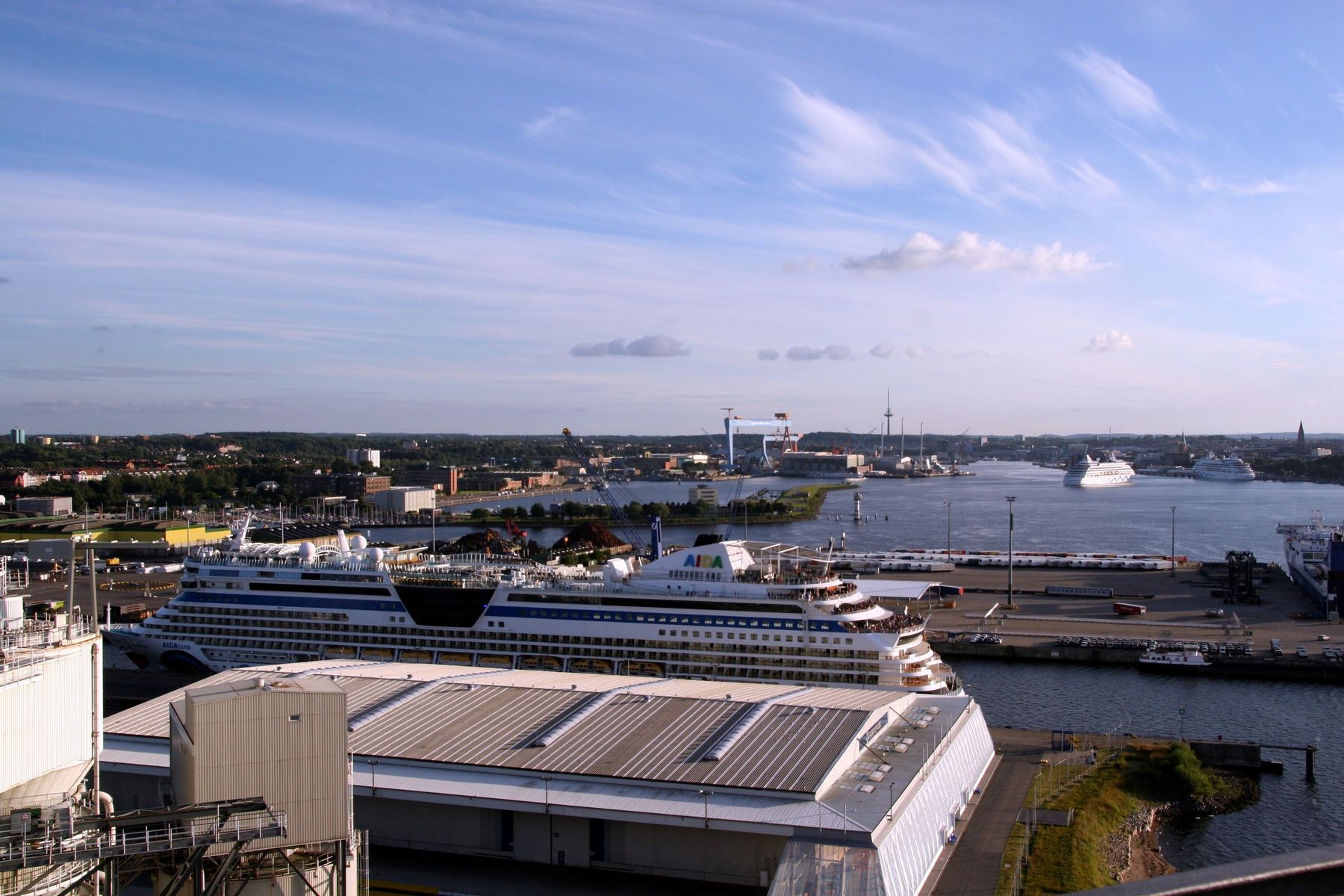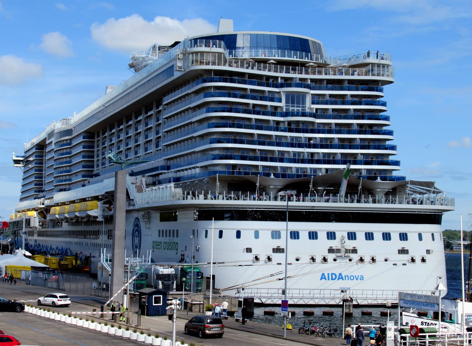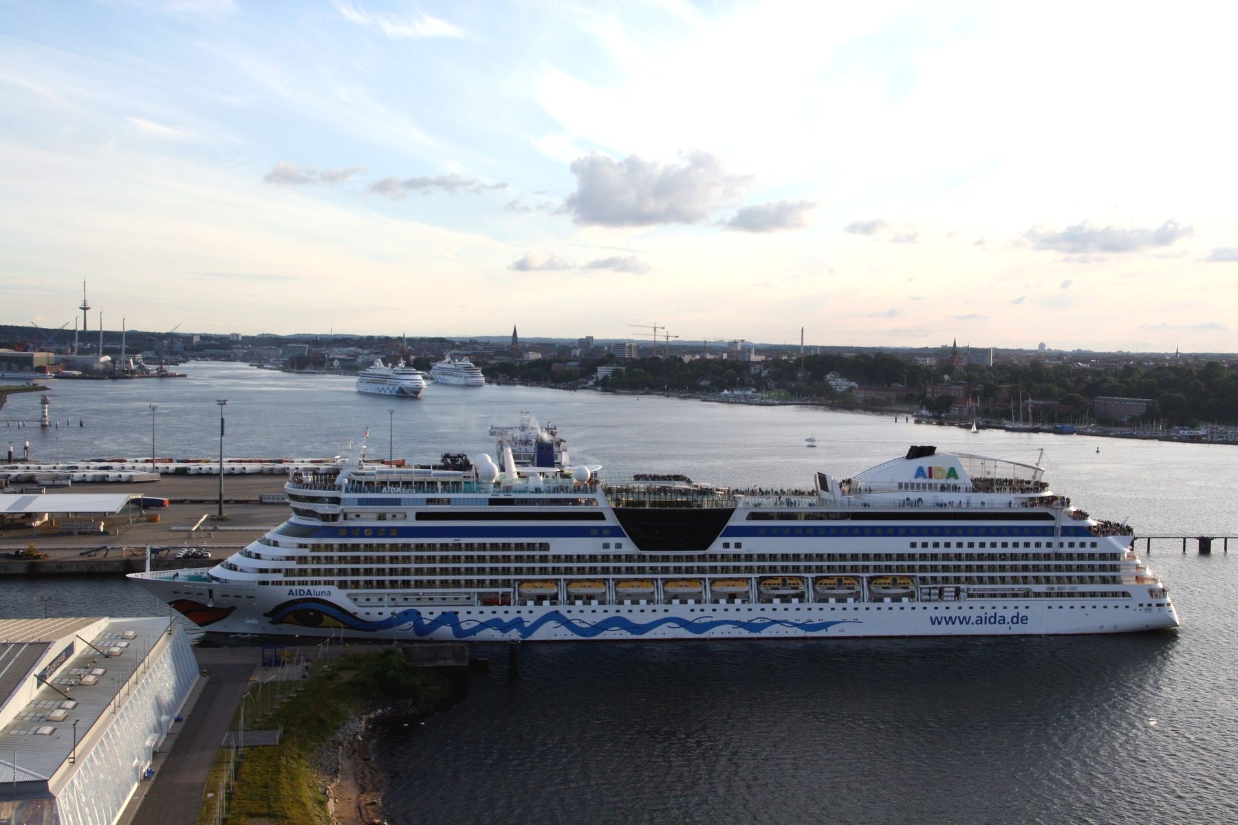 Die AIDAvita und AIDAaura sind auf der "Kieler Förde" im Bereich vom Ostseekai zu sehen