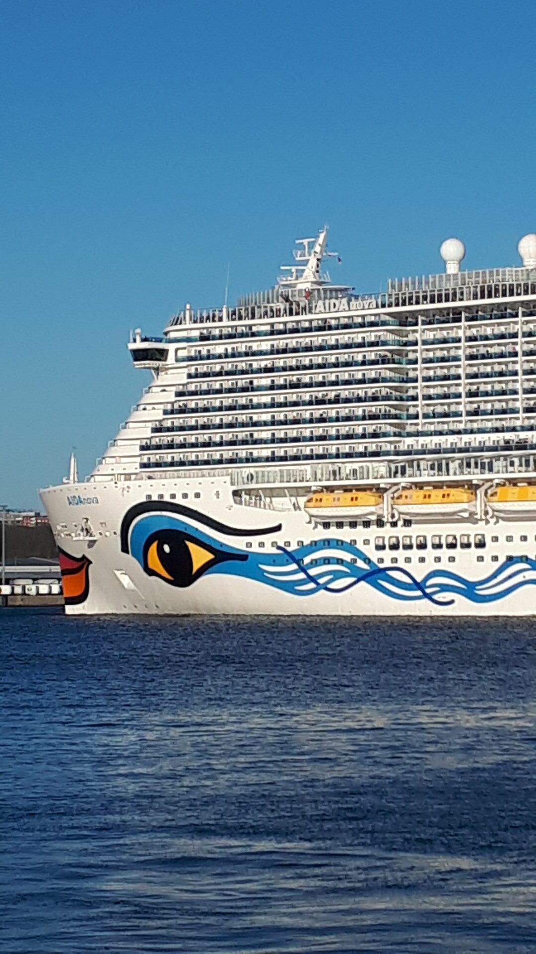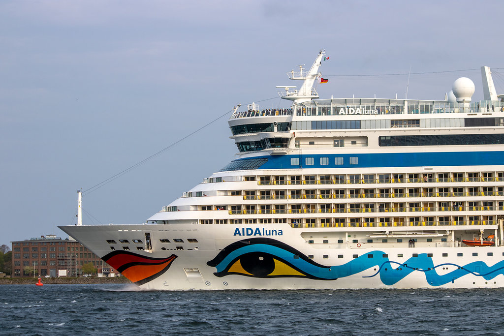 Die AIDAluna fährt ihr Auslaufmanöver im Ostuferhafen