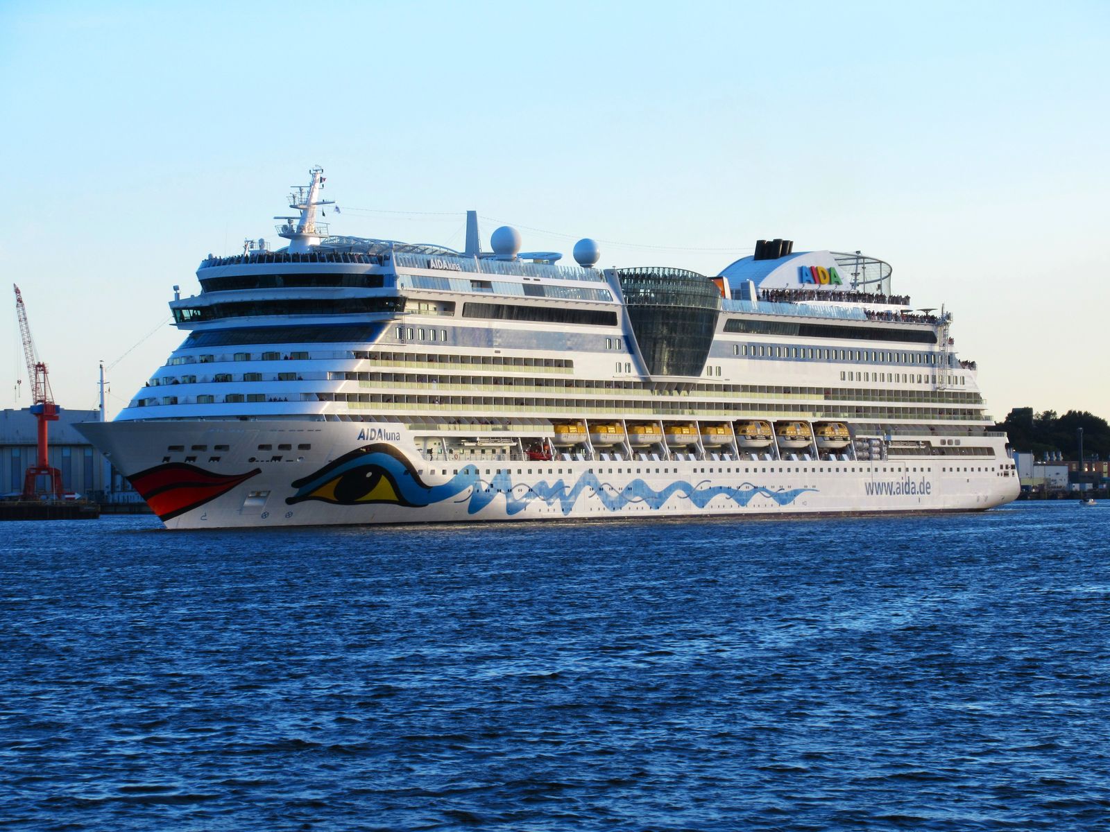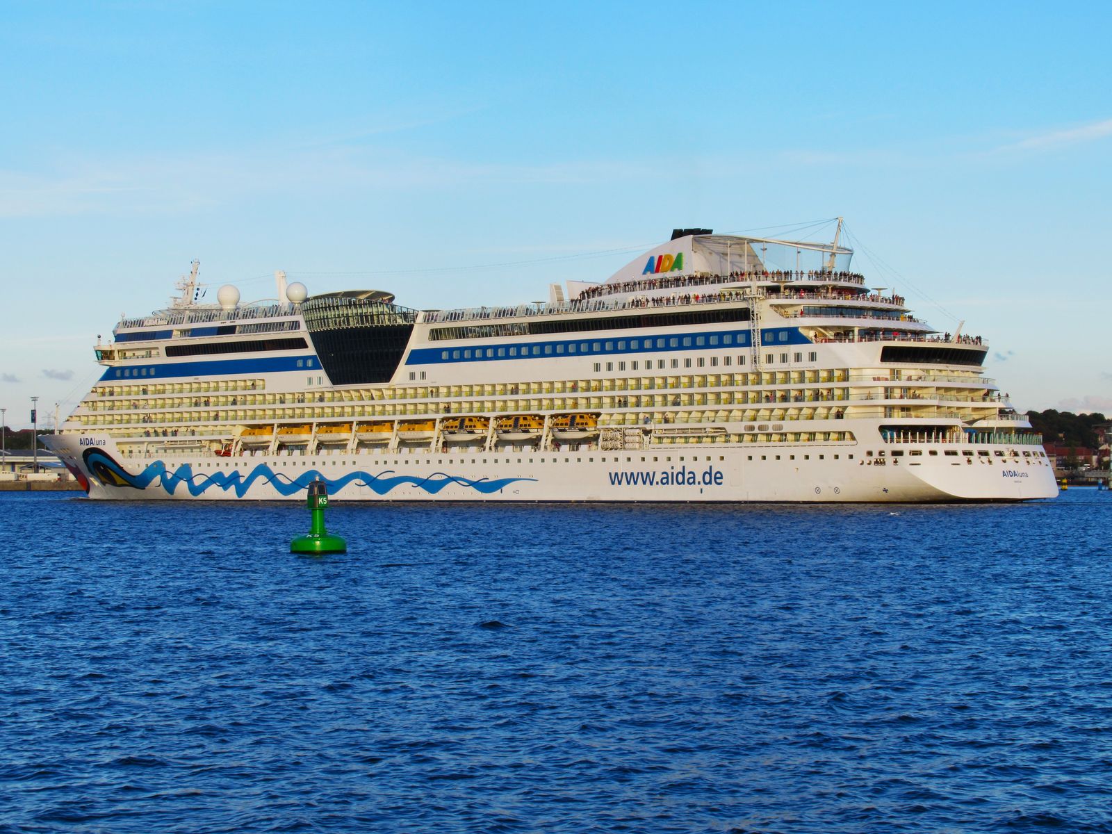 Die AIDAluna fährt um 18:11h ihr Auslaufmanöver auf der "Kieler Förde"