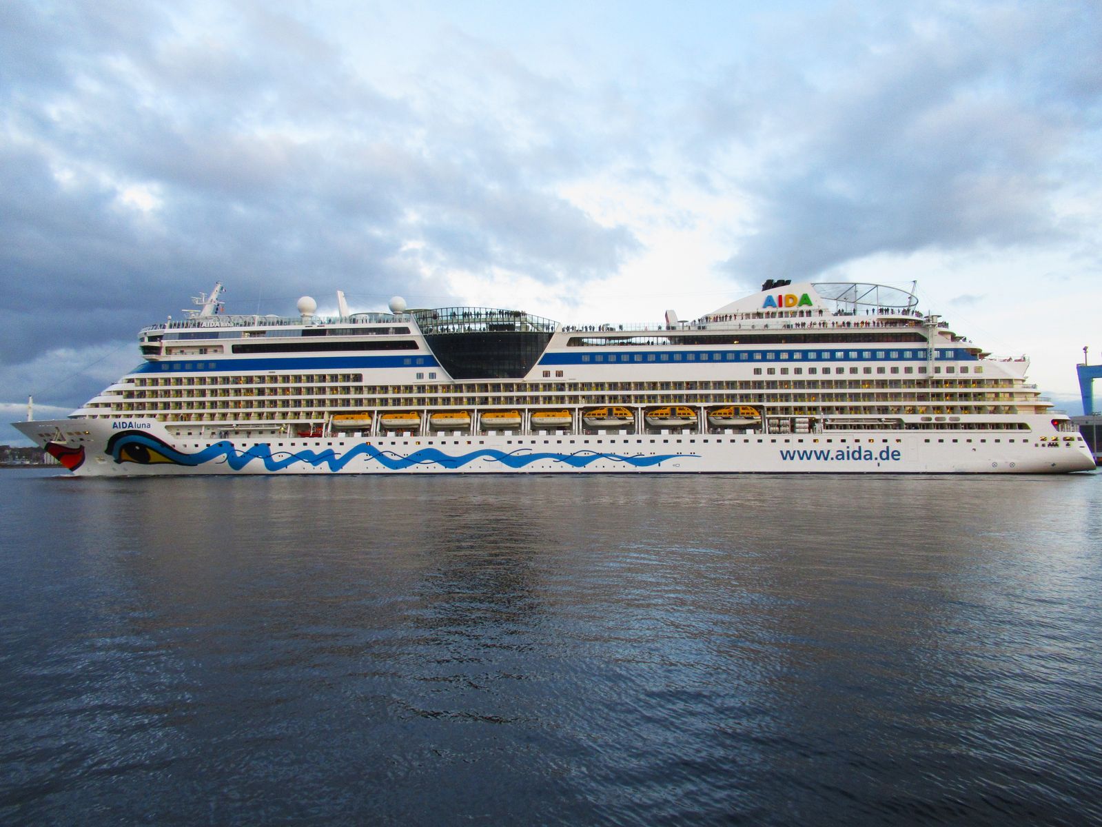 Die AIDAluna fährt um 17:30h ihr Auslaufmanöver auf der "Kieler Förde"
