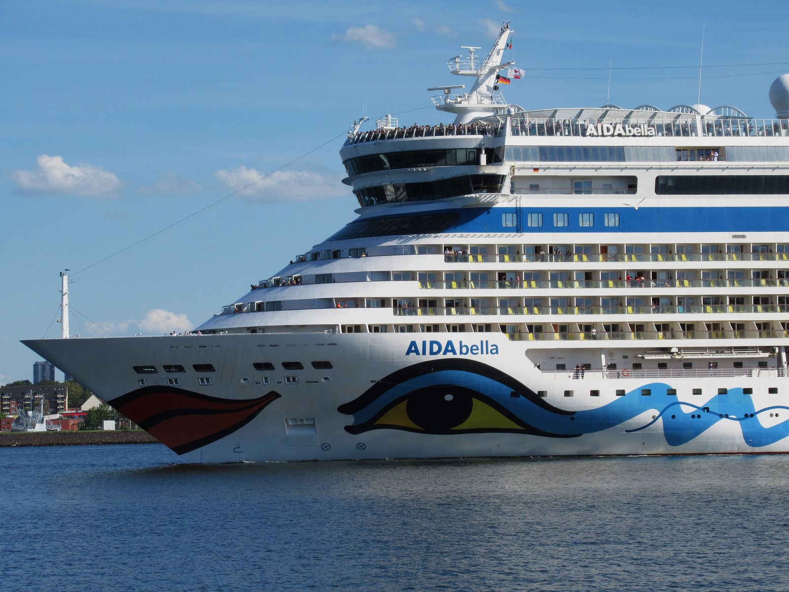Die zahlreichen Passagiere an Oberdeck waren sicherlich auch begeistert von ihrer Revierfahrt mit der AIDAbella auf der "Kieler Förde"