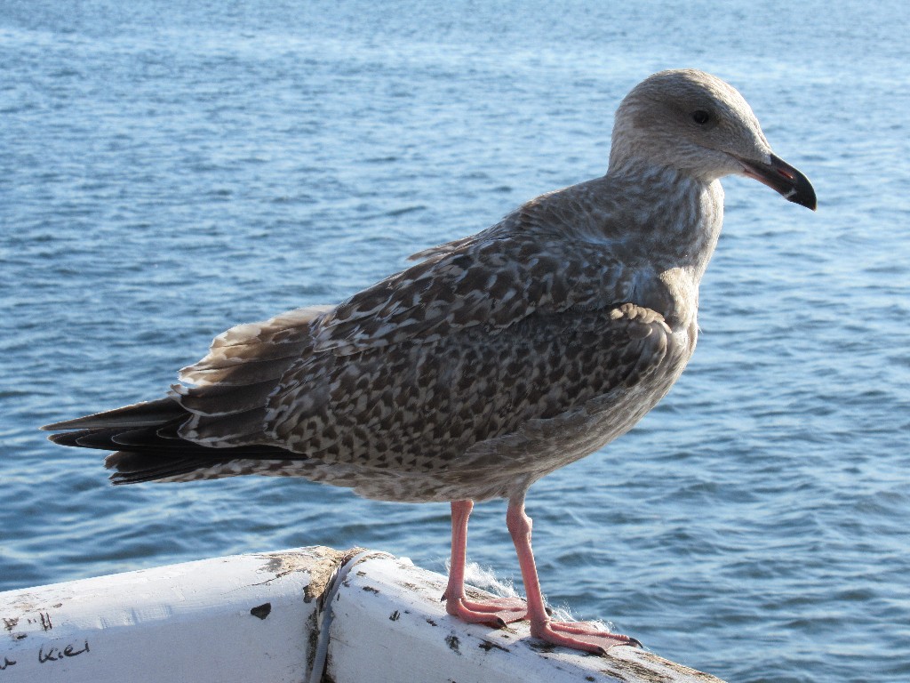 Diese Möwe hat mir morgens auf dem Bootssteg etwas Gesellschaft geleistet und war auch begeistert von den Dampfern auf der "Kieler Förde"