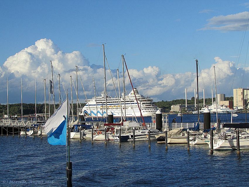 Ich habe mir deine Bilder vom Einlaufmanöver der AIDAluna am 04.08. nochmal angesehen,da war die "Kieler Förde" morgens wie ein spiegelglatter Ententeich :schwimmen: