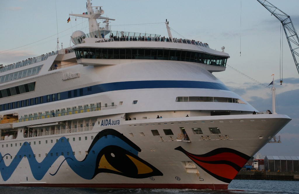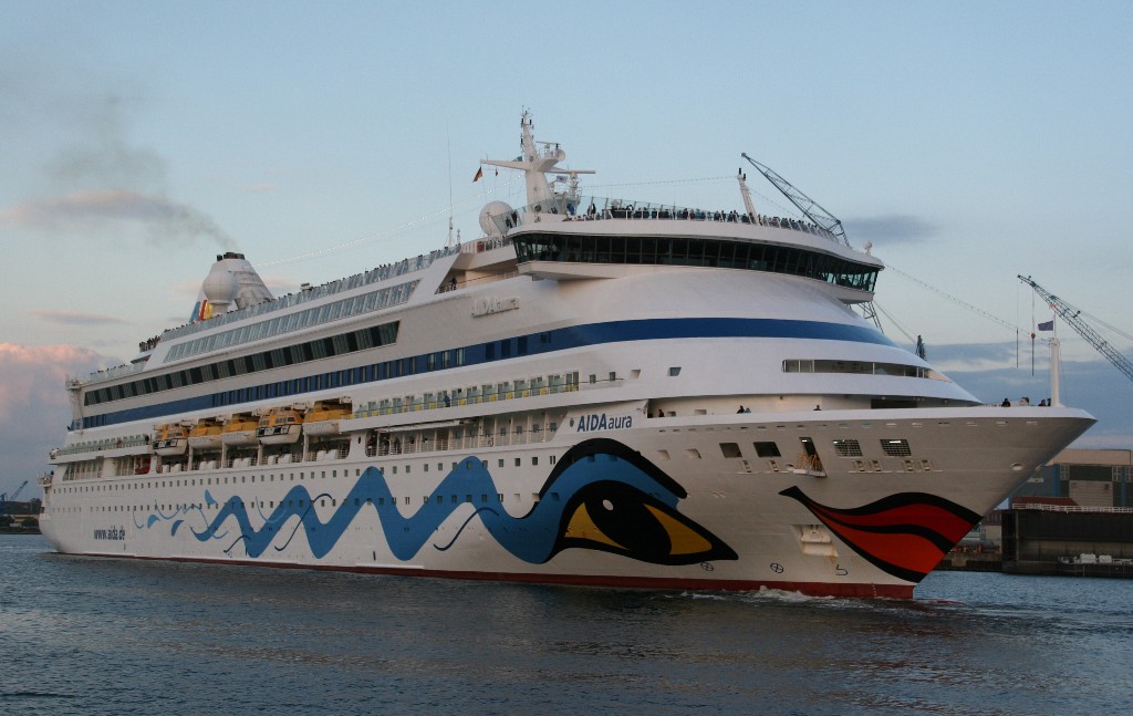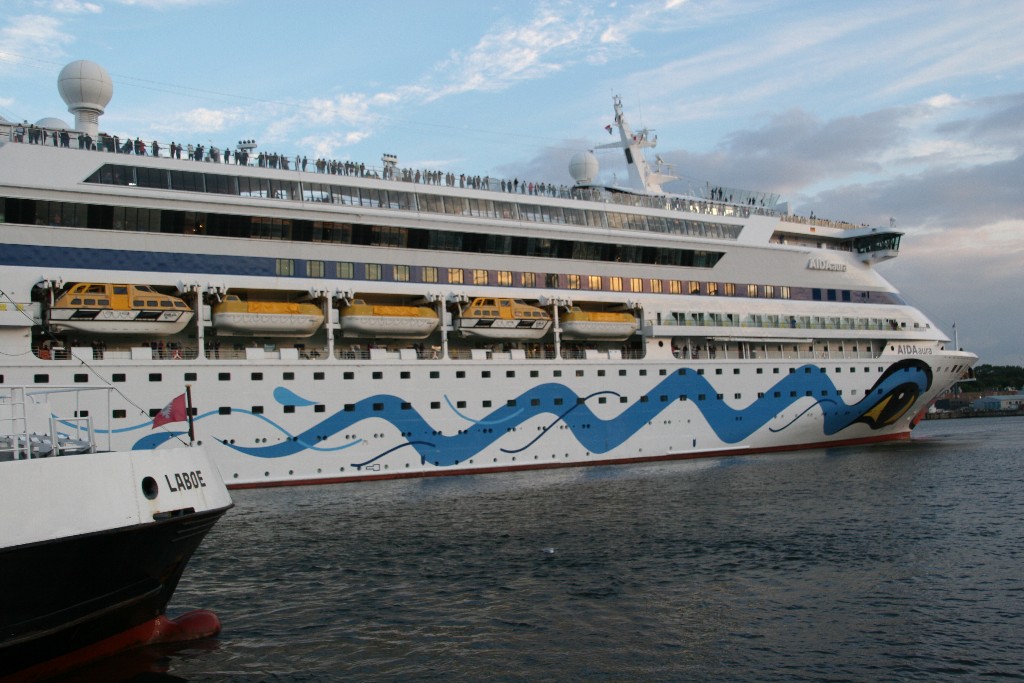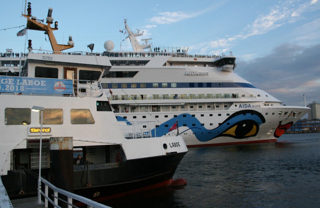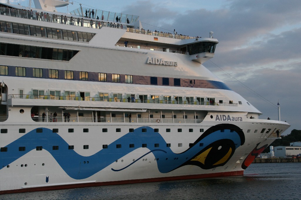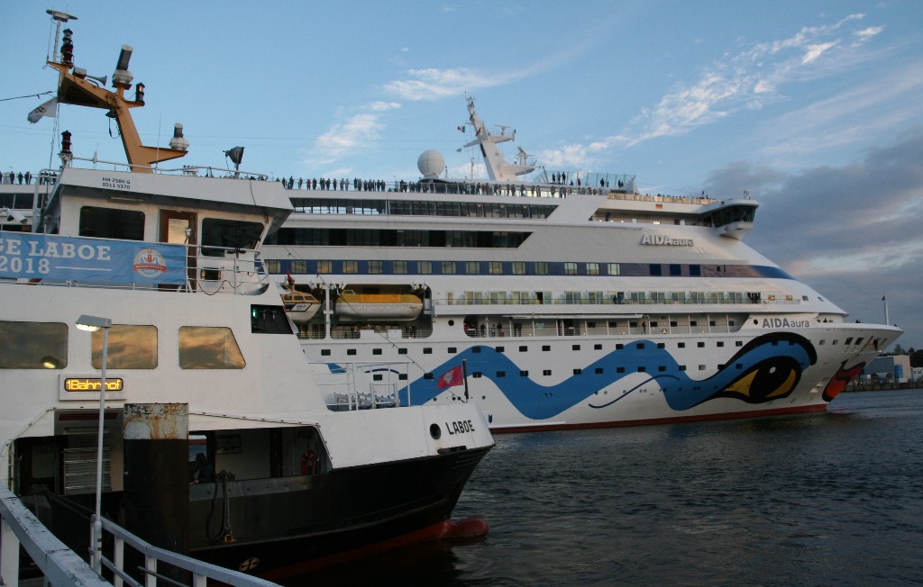 Als nächstes gibt es noch Bilder vom verspäteten Auslaufmanöver der AIDAaura am 08.09.2018