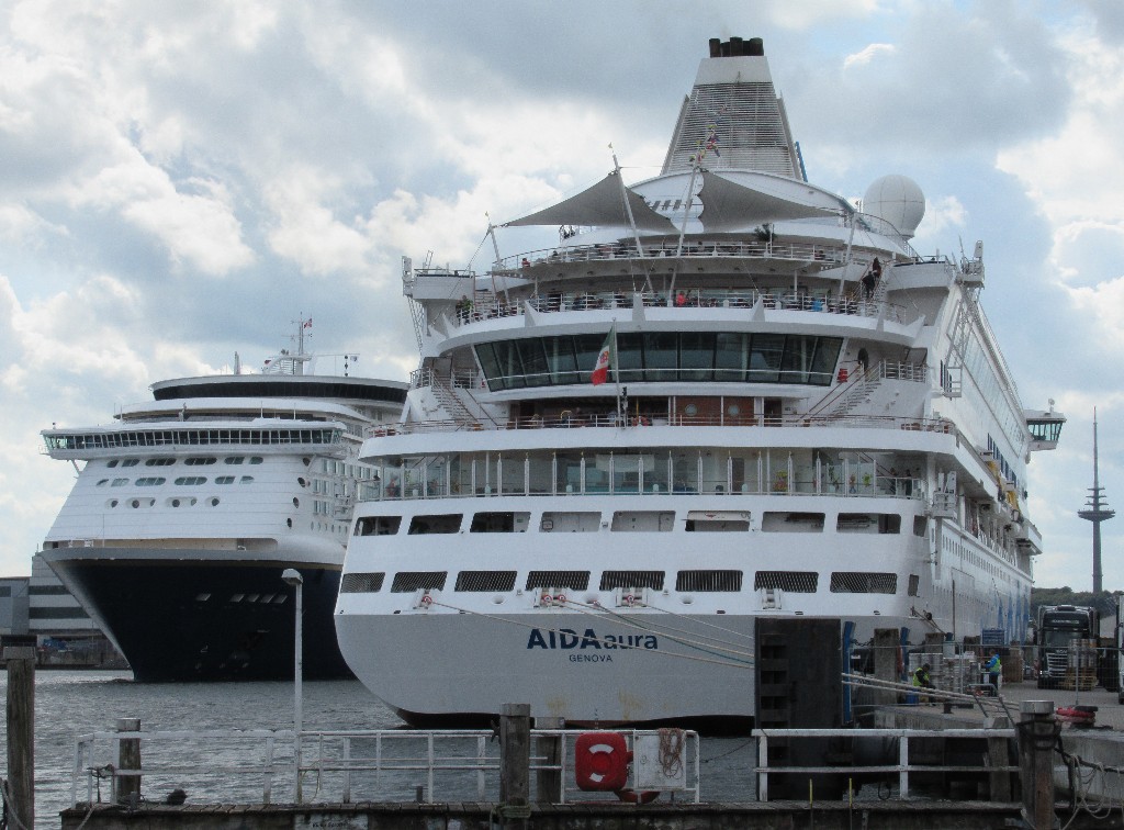 Die AIDAbella ist unmittelbar vor dem Liegeplatz 27 am Ostseekai