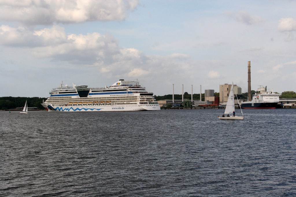 Die AIDAluna fährt um 07:29h ihre Revierfahrt auf der "Kieler Förde"