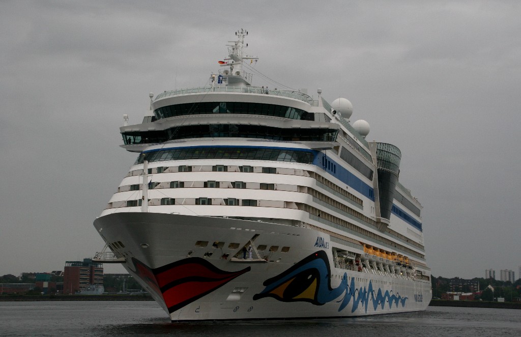 Die AIDAluna fährt rückwärts zum Liegeplatz 28 am Ostseekai