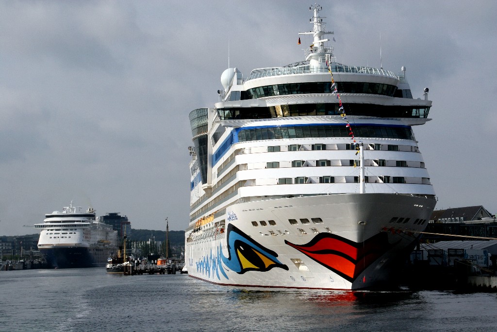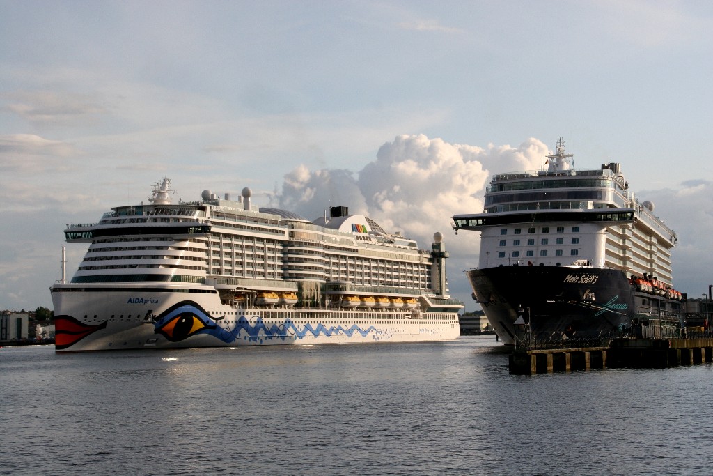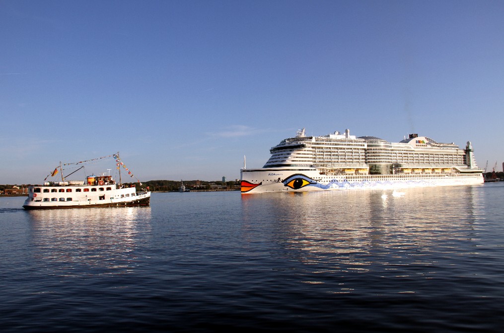 Der Ausflugsdampfer "Stadt Kiel" und die AIDAprima auf der "Kieler Förde"