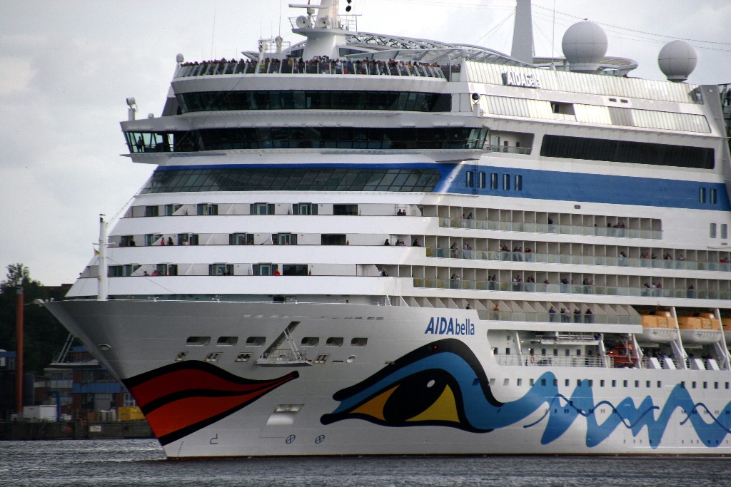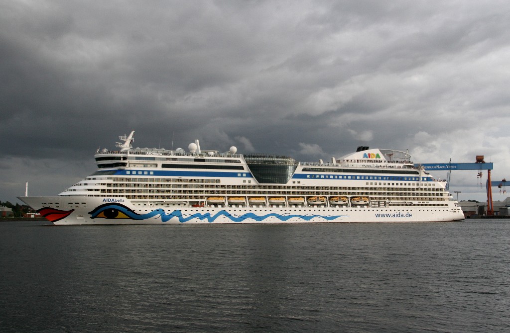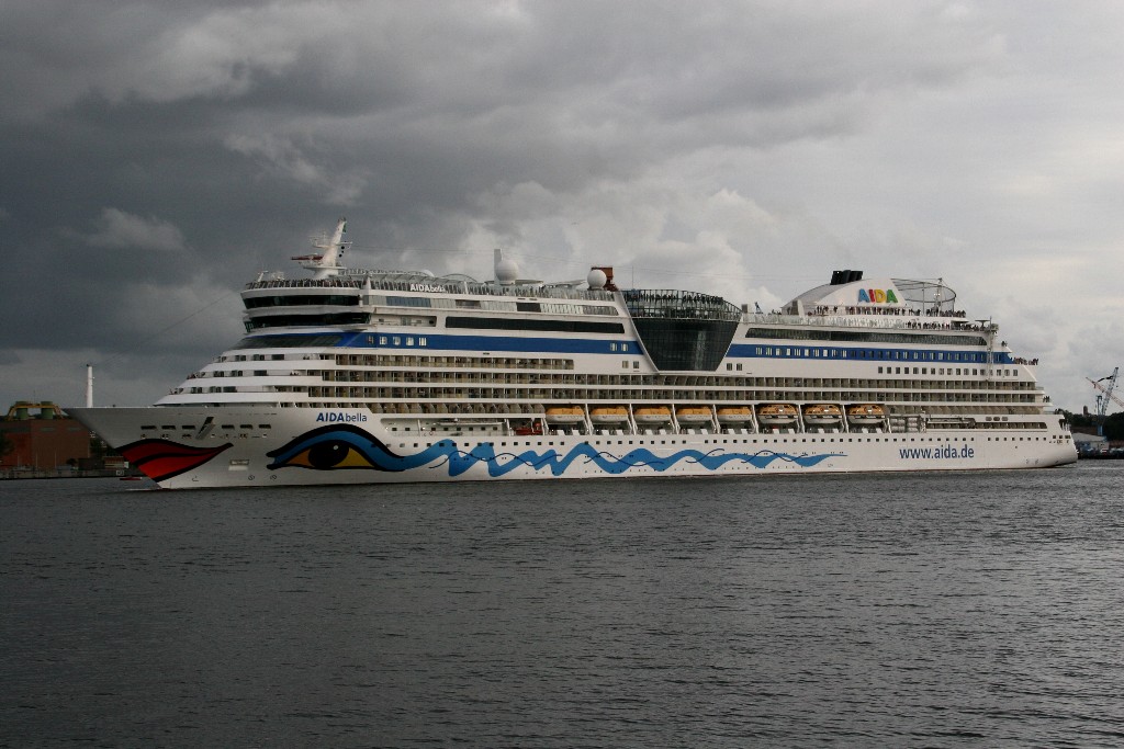 Die AIDAbella fährt um 18:13h ihr Auslaufmanöver am Ostseekai (Liegeplatz 27)
