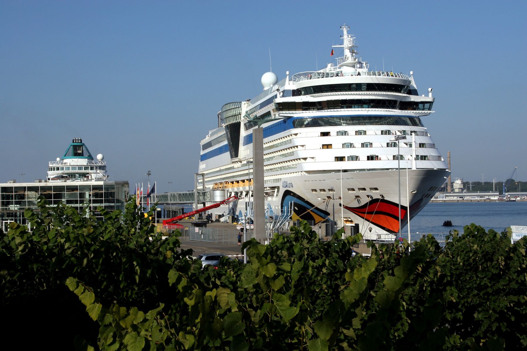 die AIDAluna hat am 09.09.2021 vorwärts an ihrem "Liegeplatz 27" am Ostseekai angelegt,im Hintergrund liegt die Amera am "Liegeplatz 28"