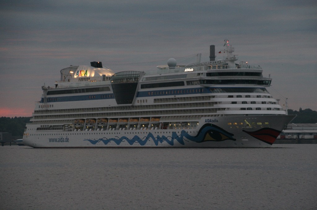 Die AIDAbella während ihrer Revierfahrt um 06:41h auf der "Kieler Förde" (es war noch ganz schön dunkel)