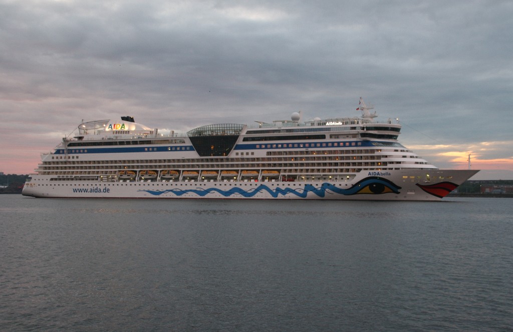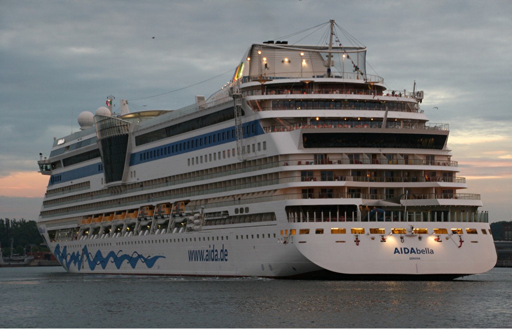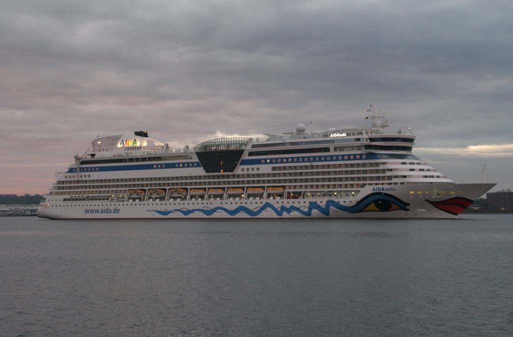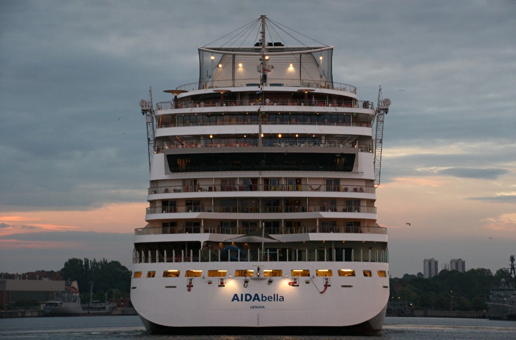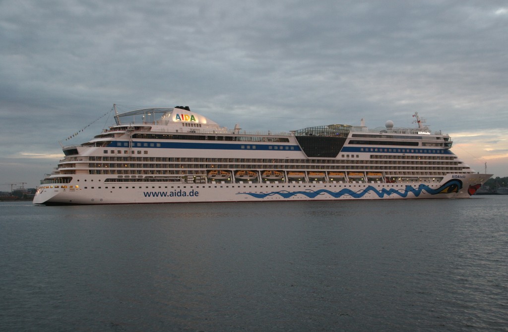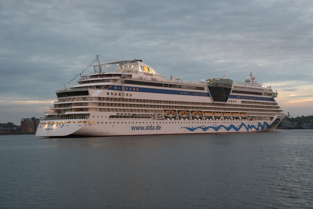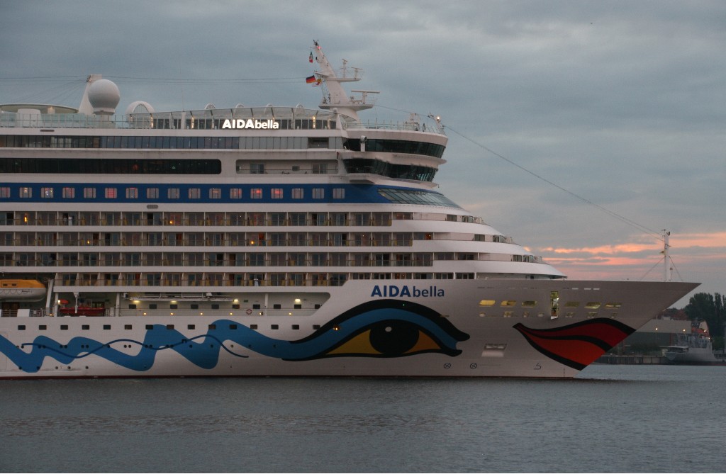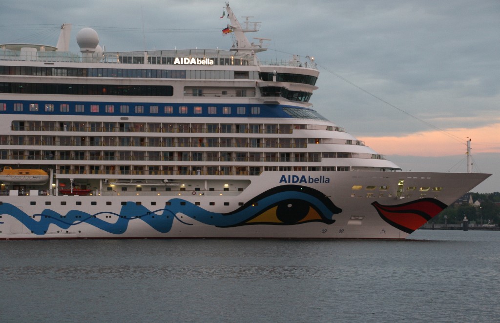 Die AIDAbella dreht mit dem Heck zur Flaniermeile "Kiellinie" auf dem "Teller"