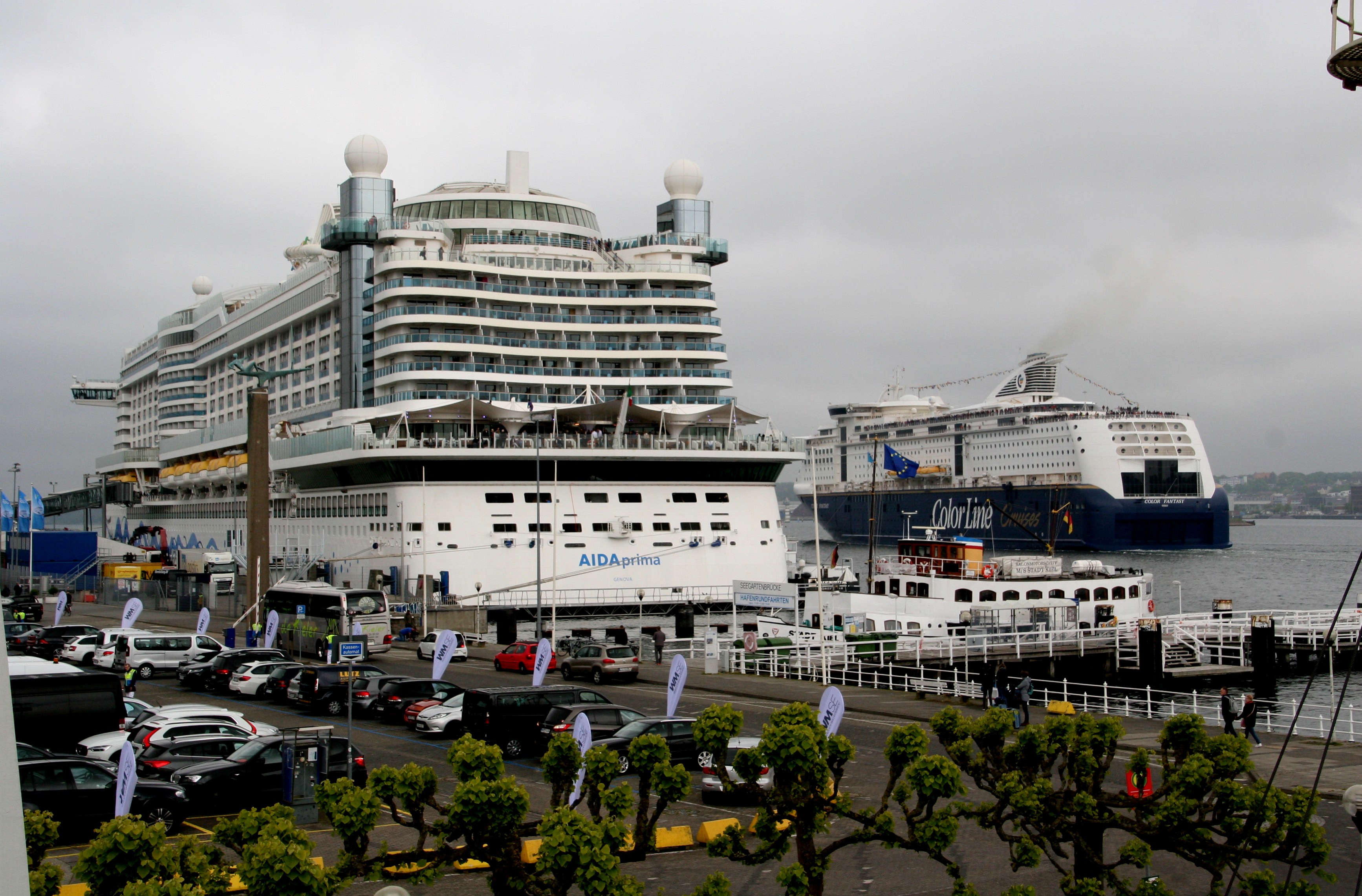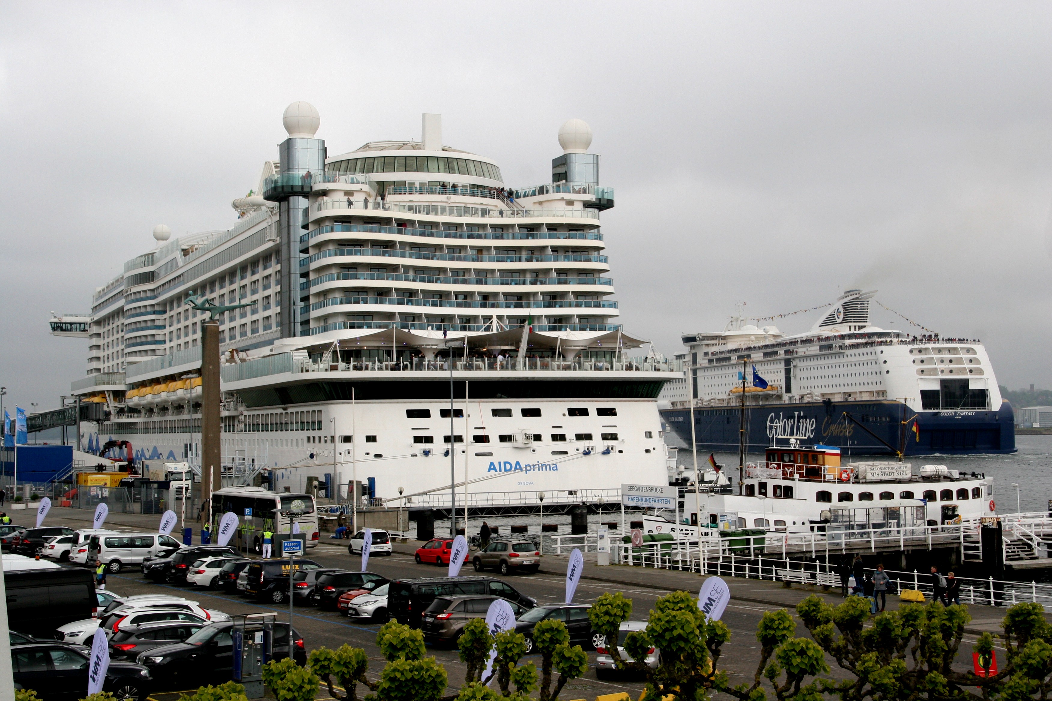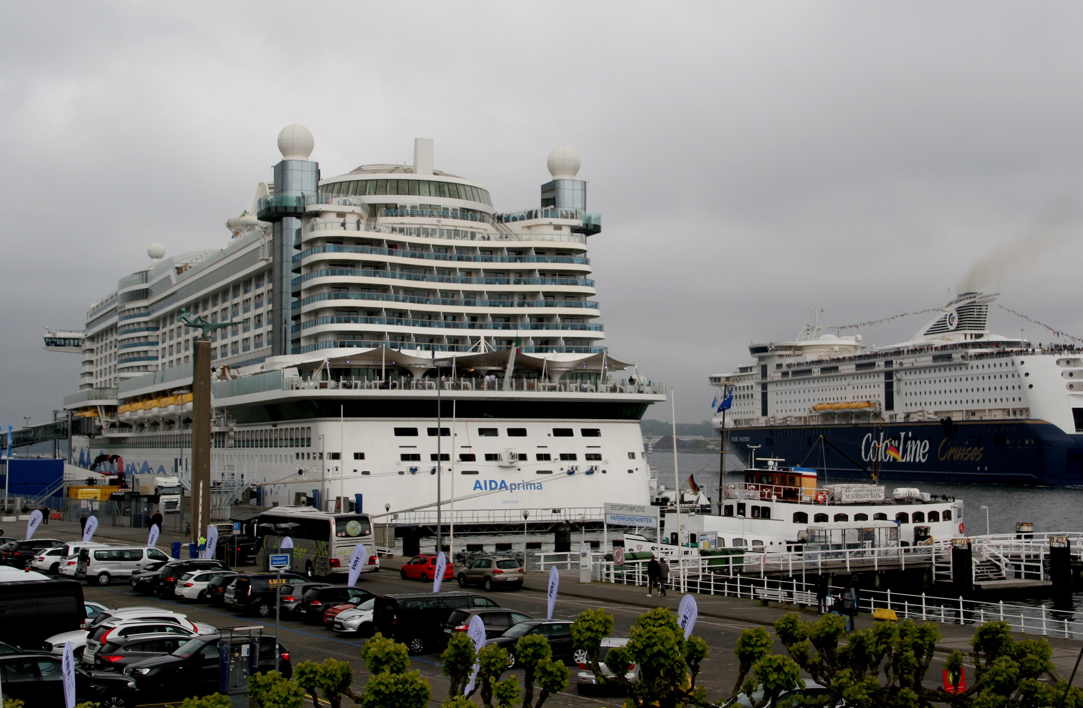 Die "Color Fantasy" um 14:09h in Höhe der AIDAprima am Ostseekai