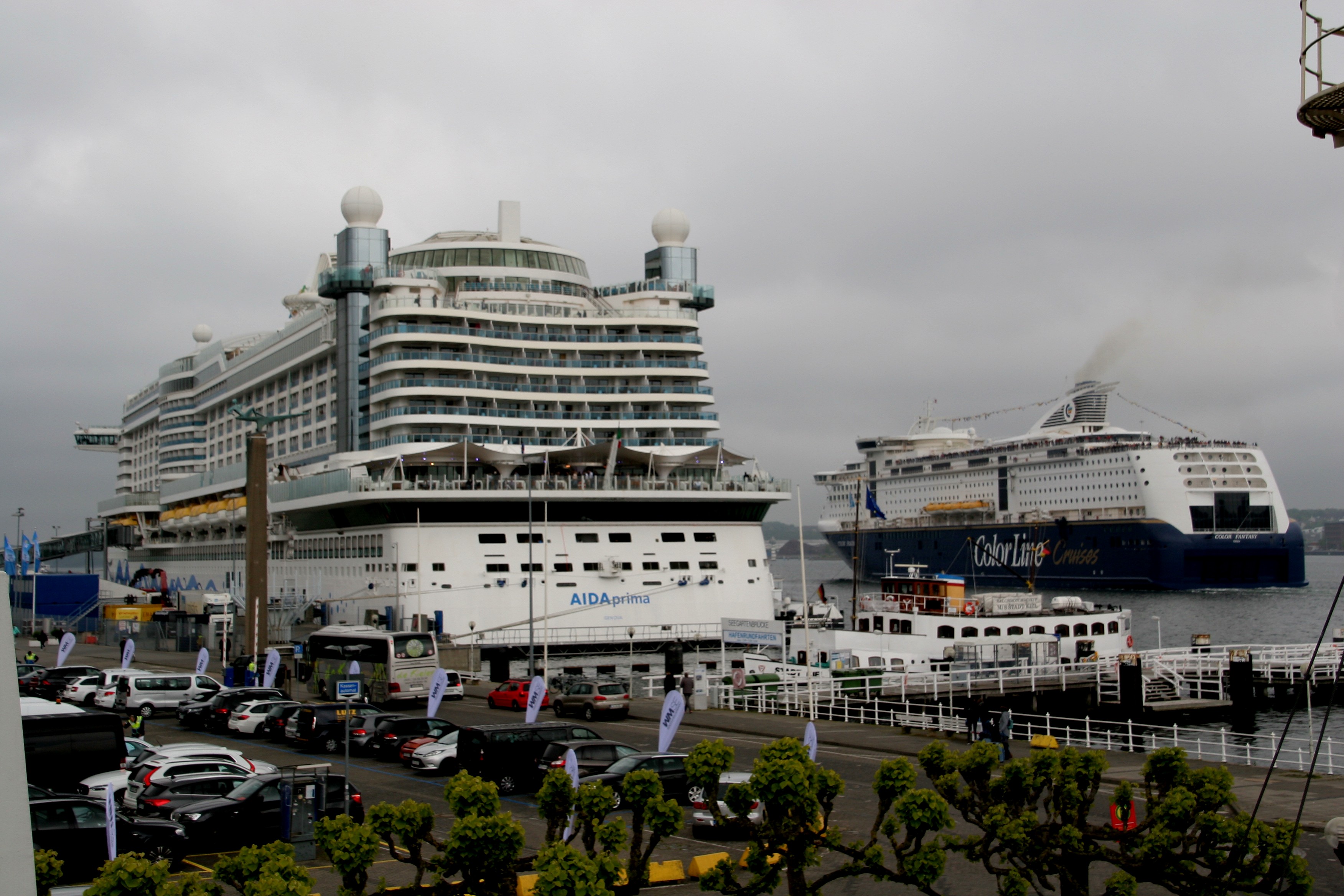Die "Color Fantasy" um 14:09h in Höhe der AIDAprima am Ostseekai