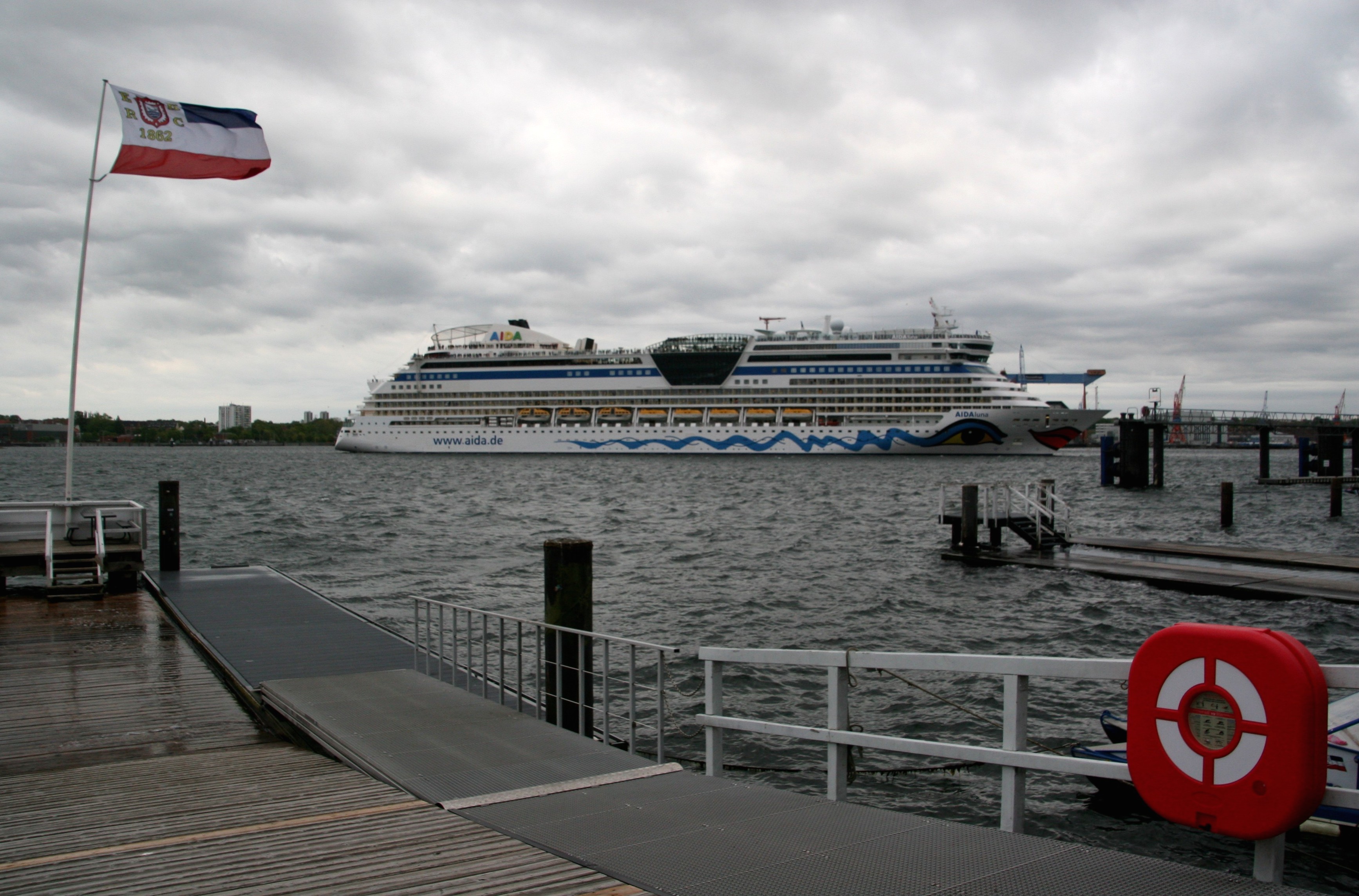 Die AIDAluna dreht vor der Flaniermeile "Kiellinie" auf dem "Teller"