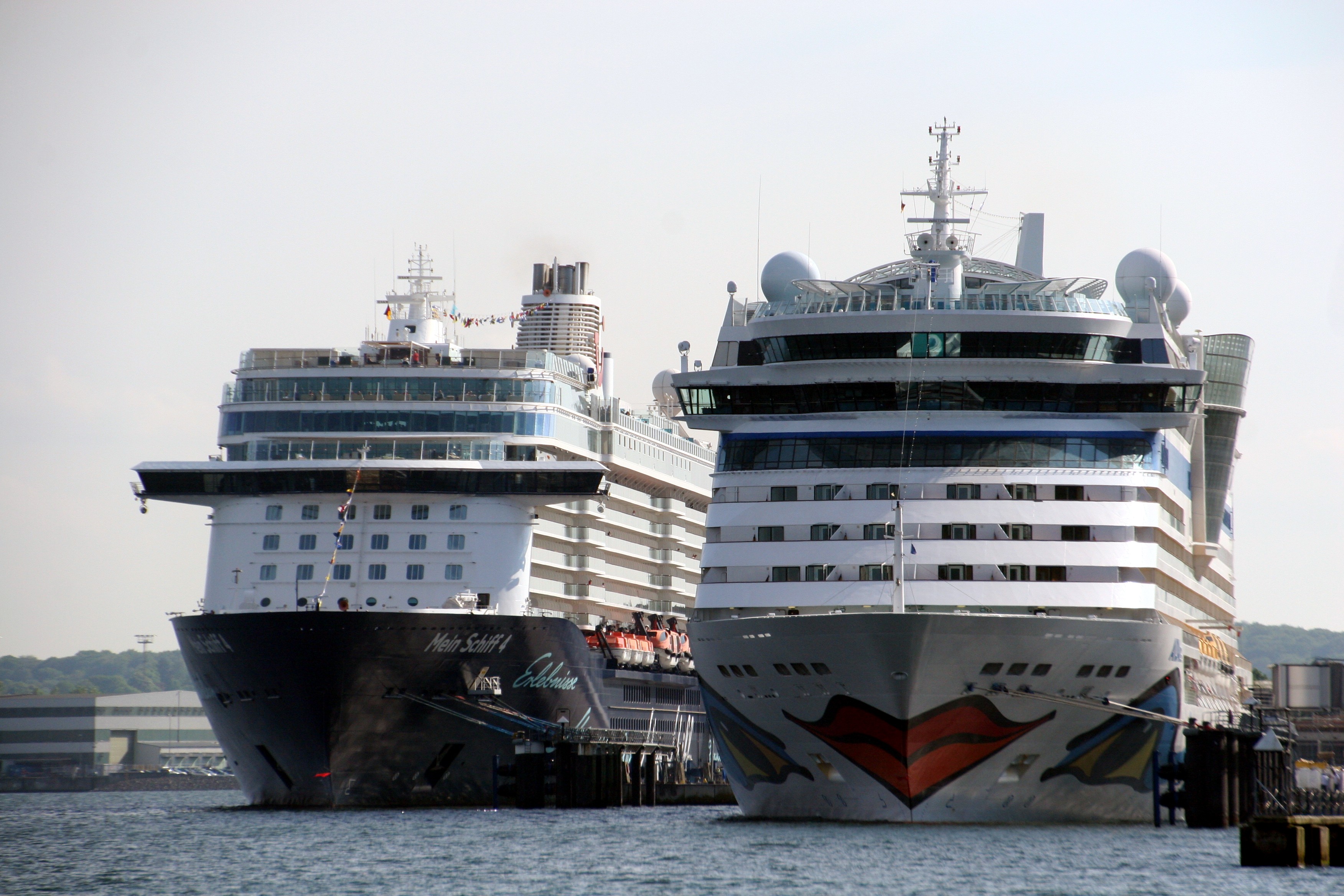 Die "Mein Schiff 4" und die AIDAluna am Ostseekai