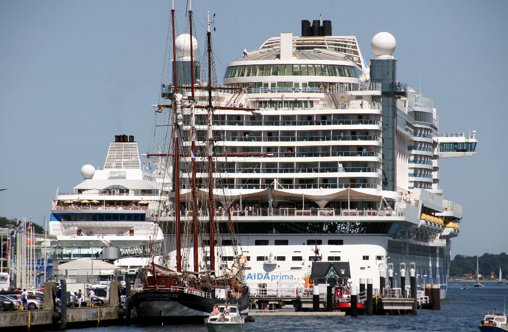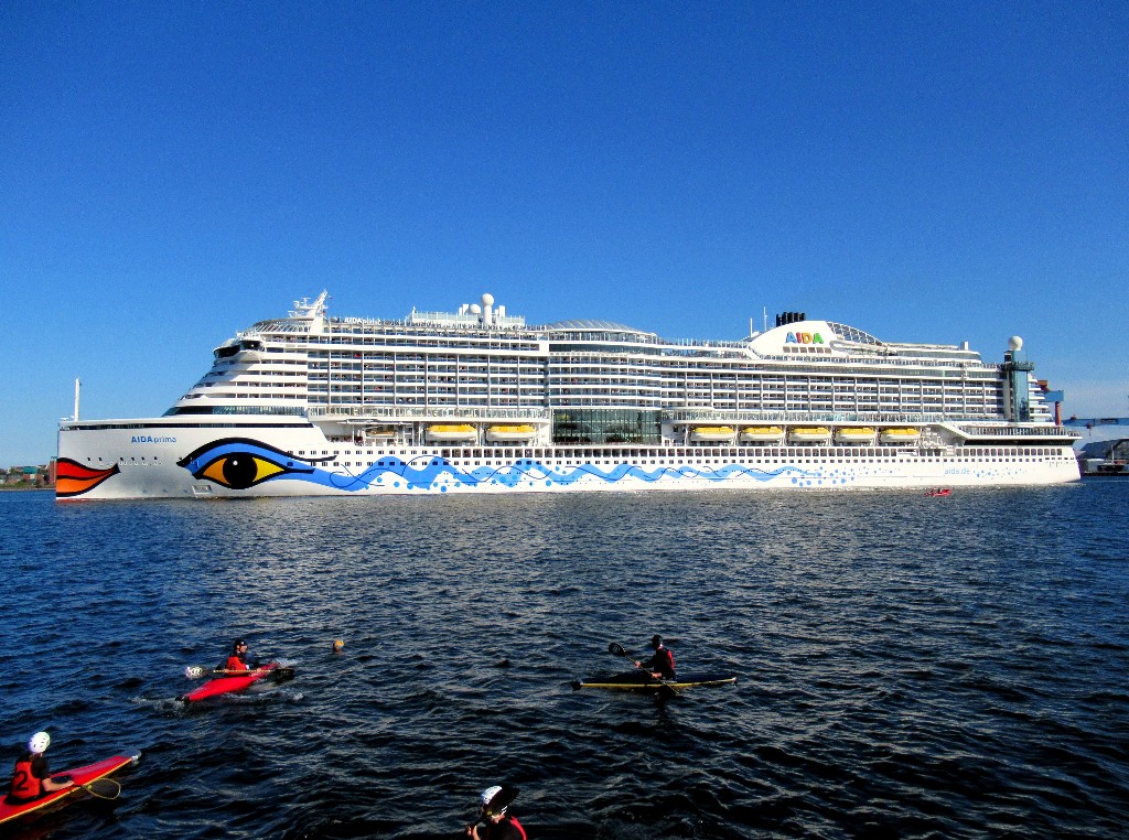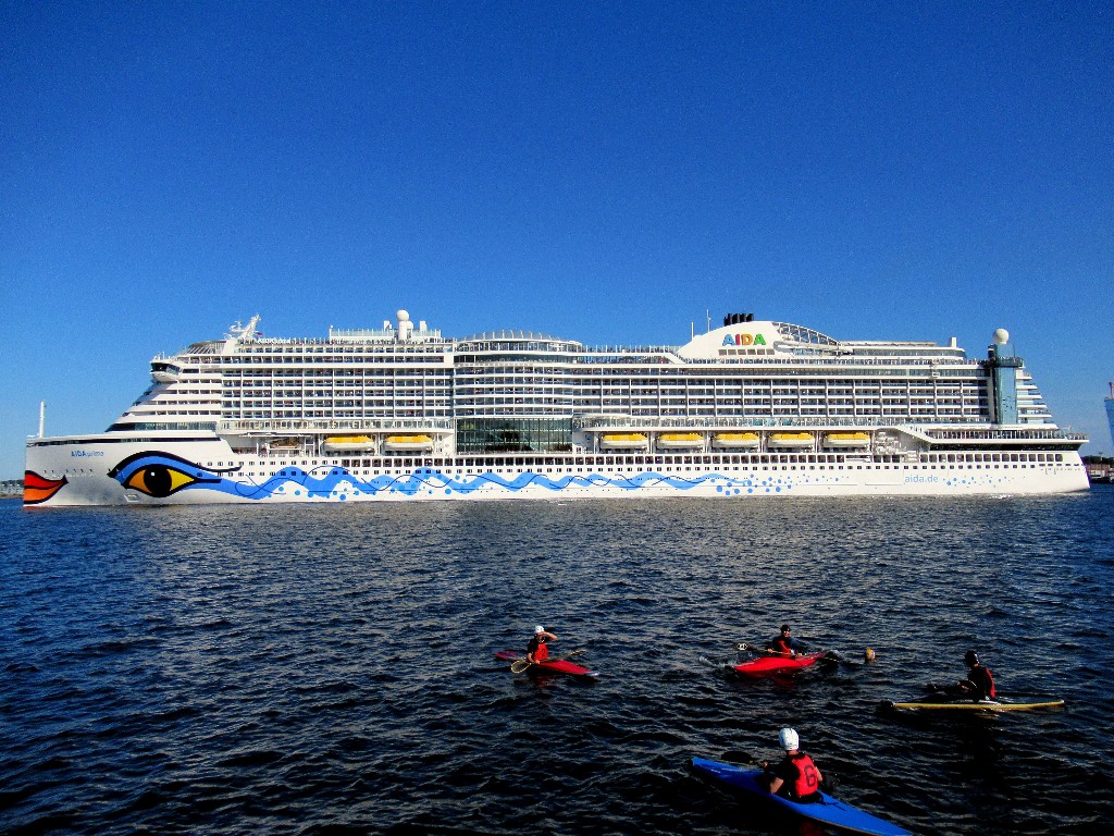 Ein "Fördedampfer" in Höhe der AIDAprima