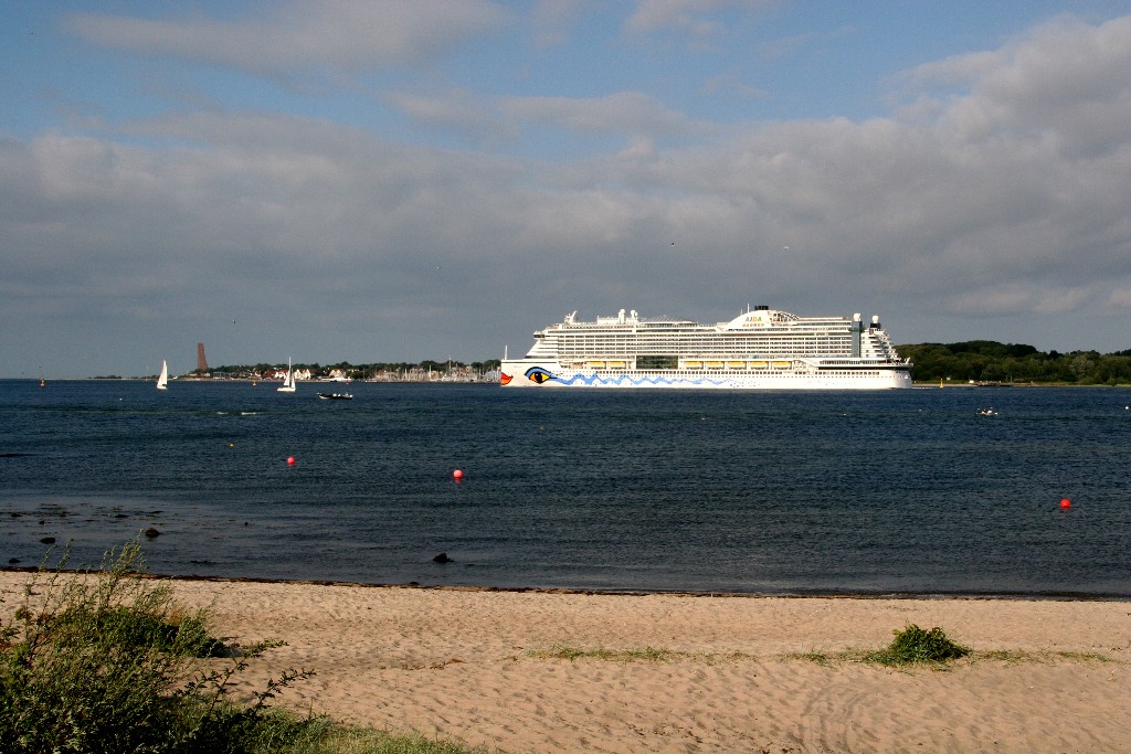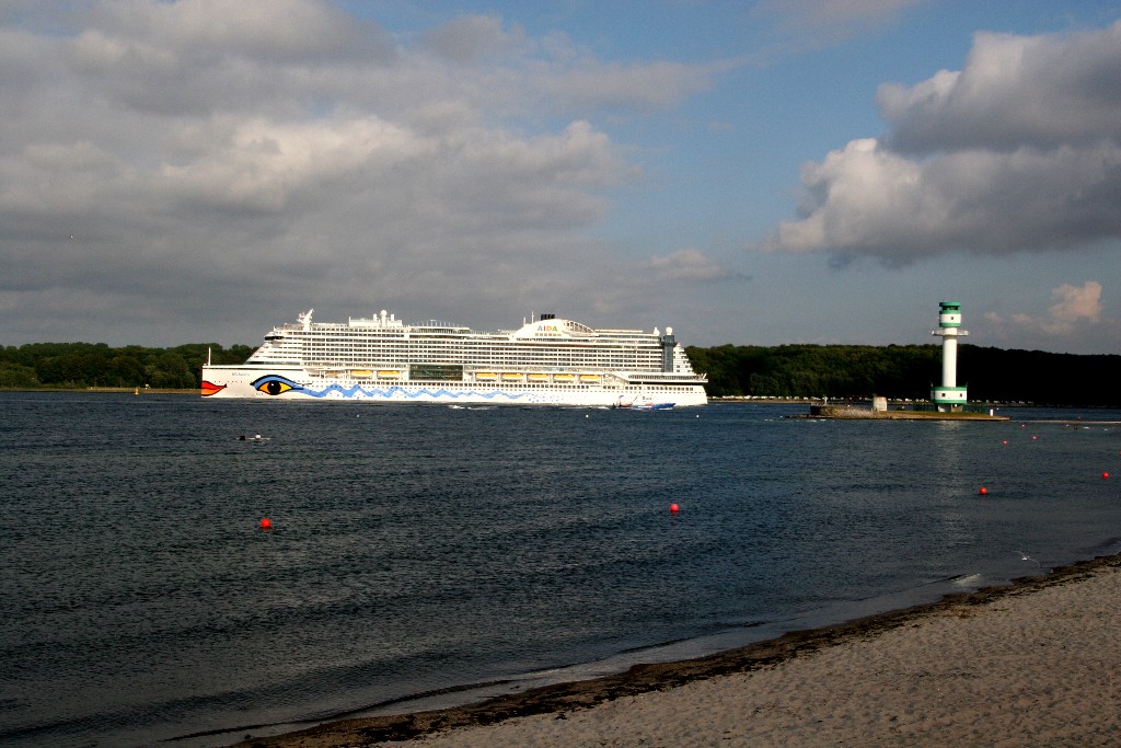 Die AIDAprima während ihrer "Revierfahrt" auf der "Kieler Förde" mit Kurs in Richtung "Laboe"