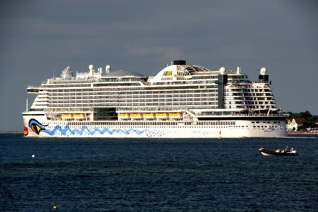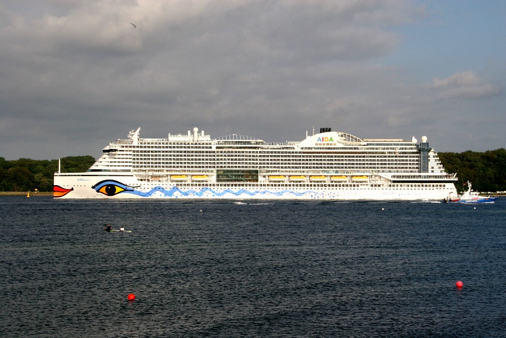 Die AIDAprima während ihrer "Revierfahrt" auf der "Kieler Förde" mit Kurs in Richtung "Laboe"