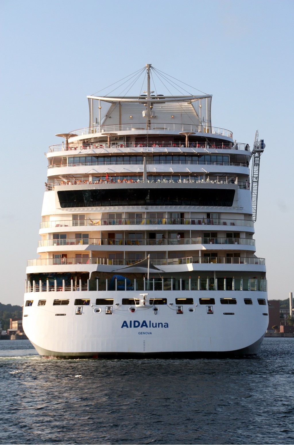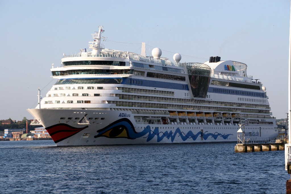 Die AIDAluna dreht mit dem Heck zur Flaniermeile "Kiellinie" auf dem "Teller"