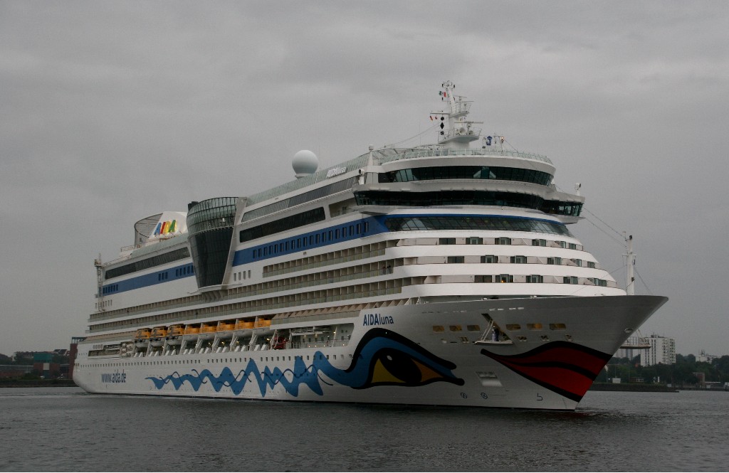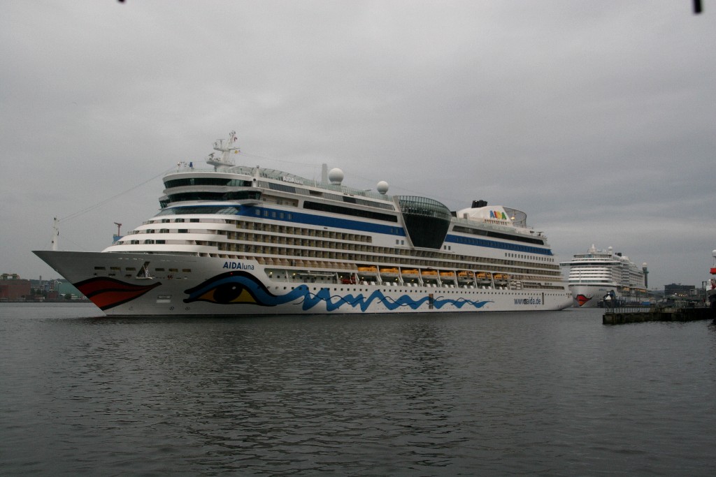 Im Gegensatz zum 27.07.2019 als die AIDAprima erst ihr Auslaufmanöver gefahren hat (siehe ab Beitrag Nr.1266) fährt am 17.08.2019 erst die AIDAluna ihr Auslaufmanöver