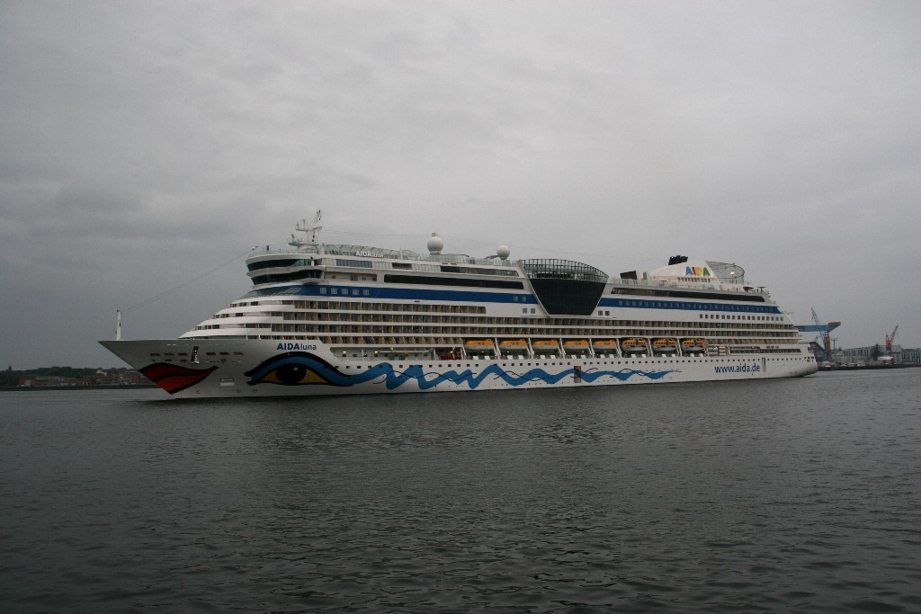 Die AIDAluna fährt rückwärts zum Liegeplatz 28 am Ostseekai