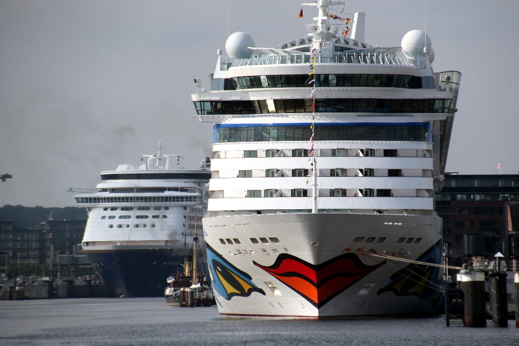 Der Ausflugsdampfer "Stadt Kiel" und die AIDAprima auf der "Kieler Förde"