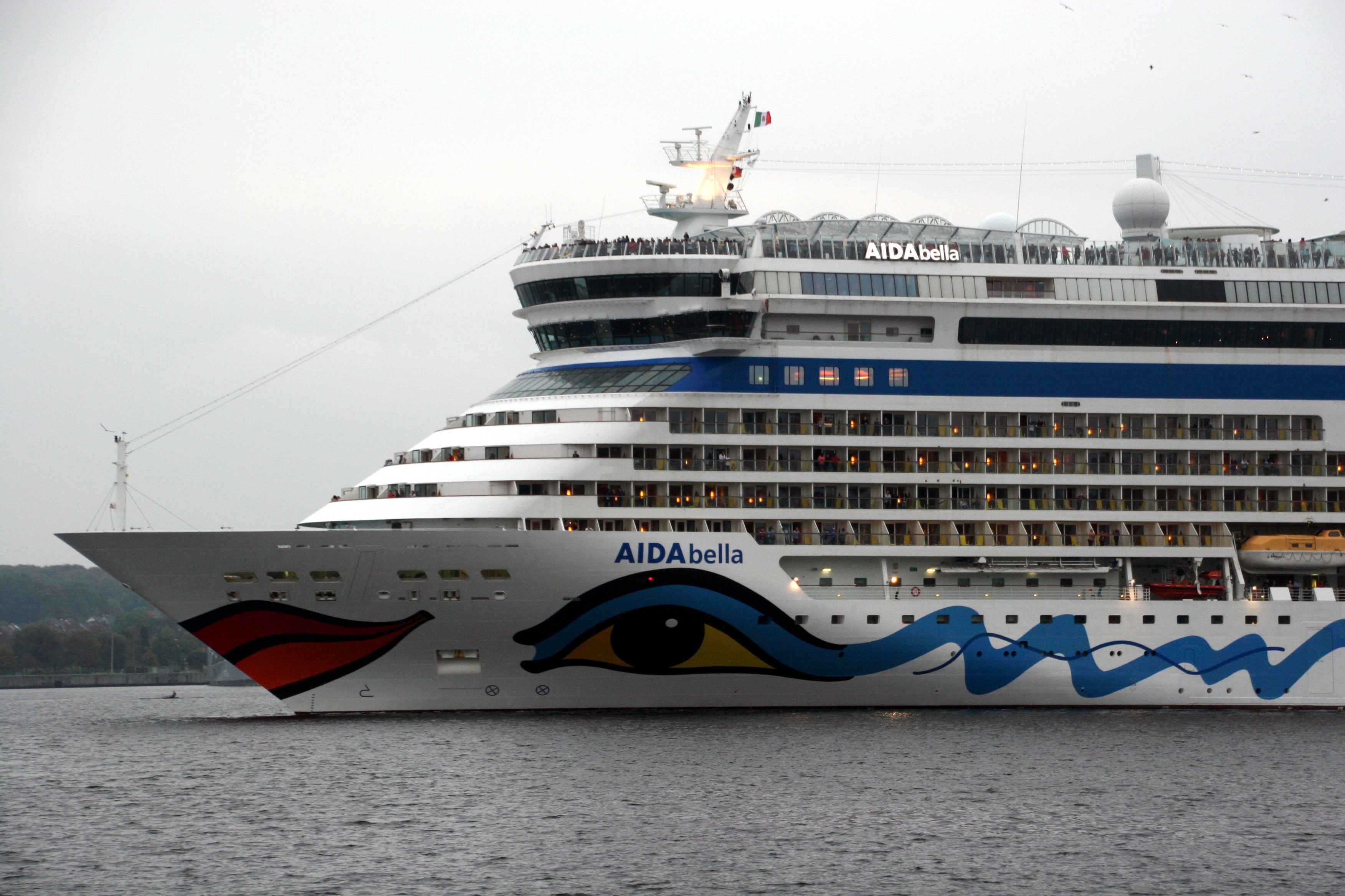 Zahlreiche "Sehleute" genießen an Oberdeck ihre Revierfahrt mit der AIDAbella auf der "Kieler Förde"