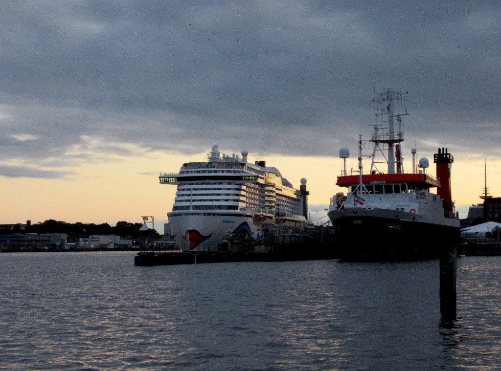 bei den Bildern der AIDAprima in abendlicher Stimmung auf der "Kieler Förde" war es doch ganz gut,daß die AIDAprima mit einer Stunde Verspätung ihr Auslaufmanöver gefahren hat (Bilder von der AIDAprima im Tageslicht auf der "Kieler Förde" gibt es ja schon reichlich)