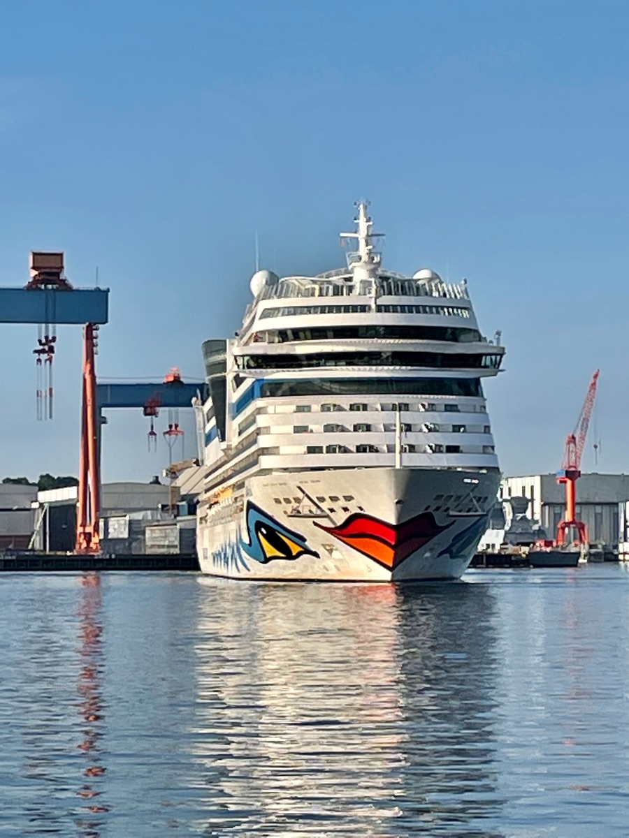 Bevor es nach Kiel ging, musste sie erstmal noch den Kiel Canal als erstes Kreuzfahrtschiff 2021 einweihen