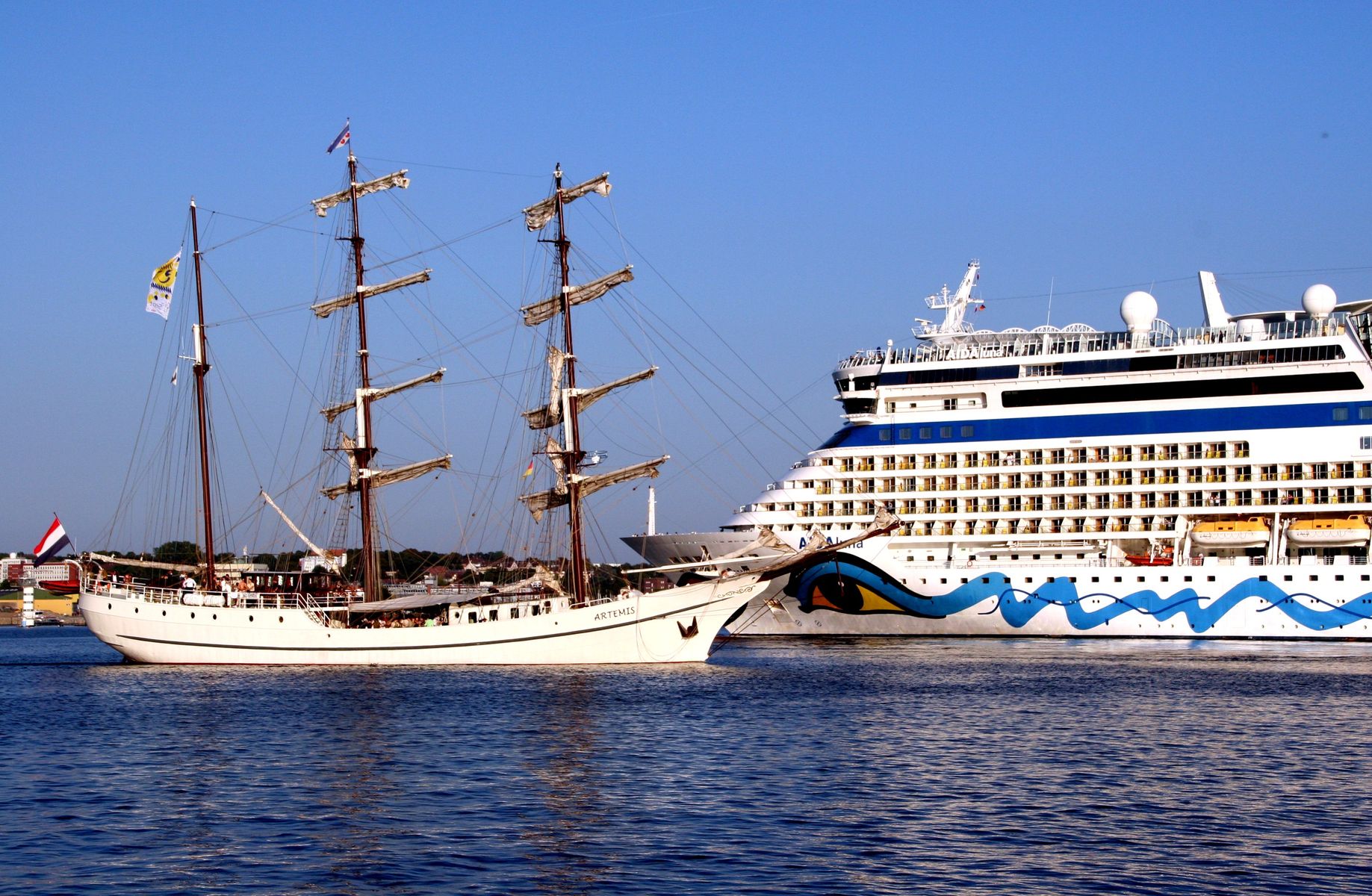 Sehr unterschiedliche Schiffe auf der "Kieler Förde"