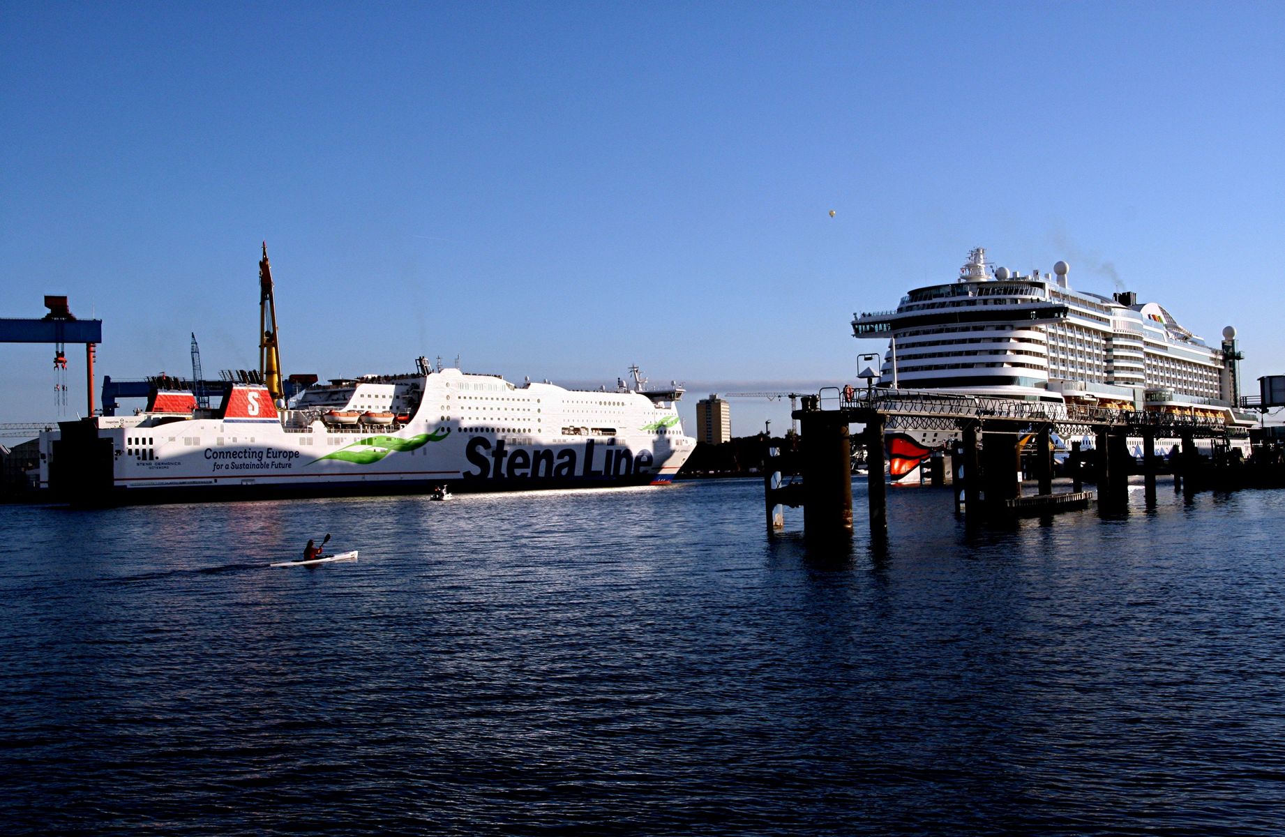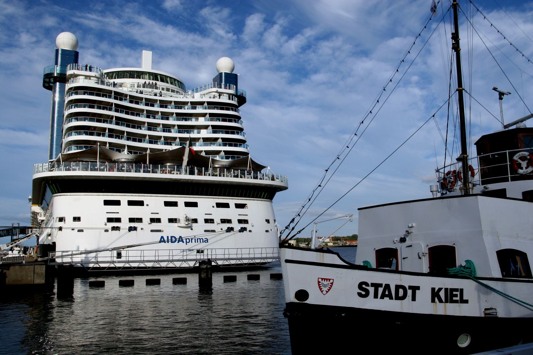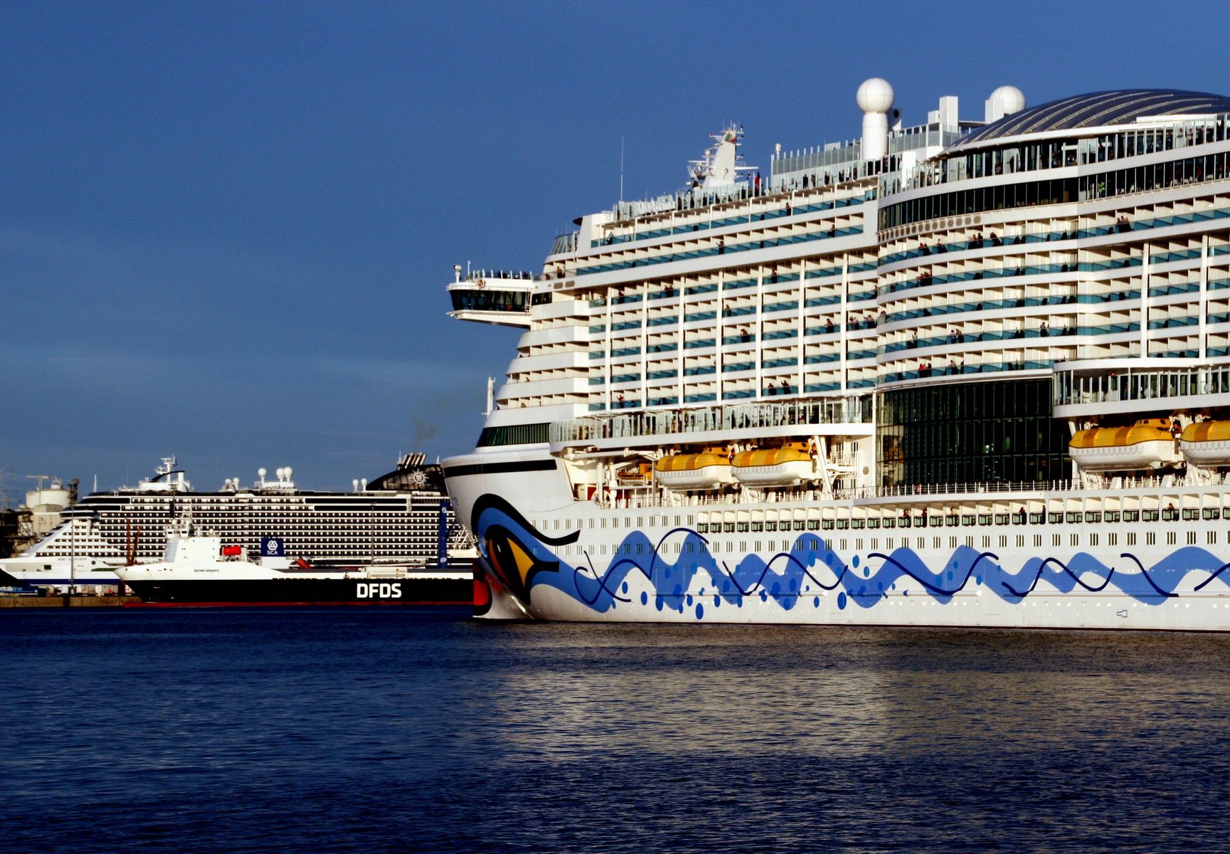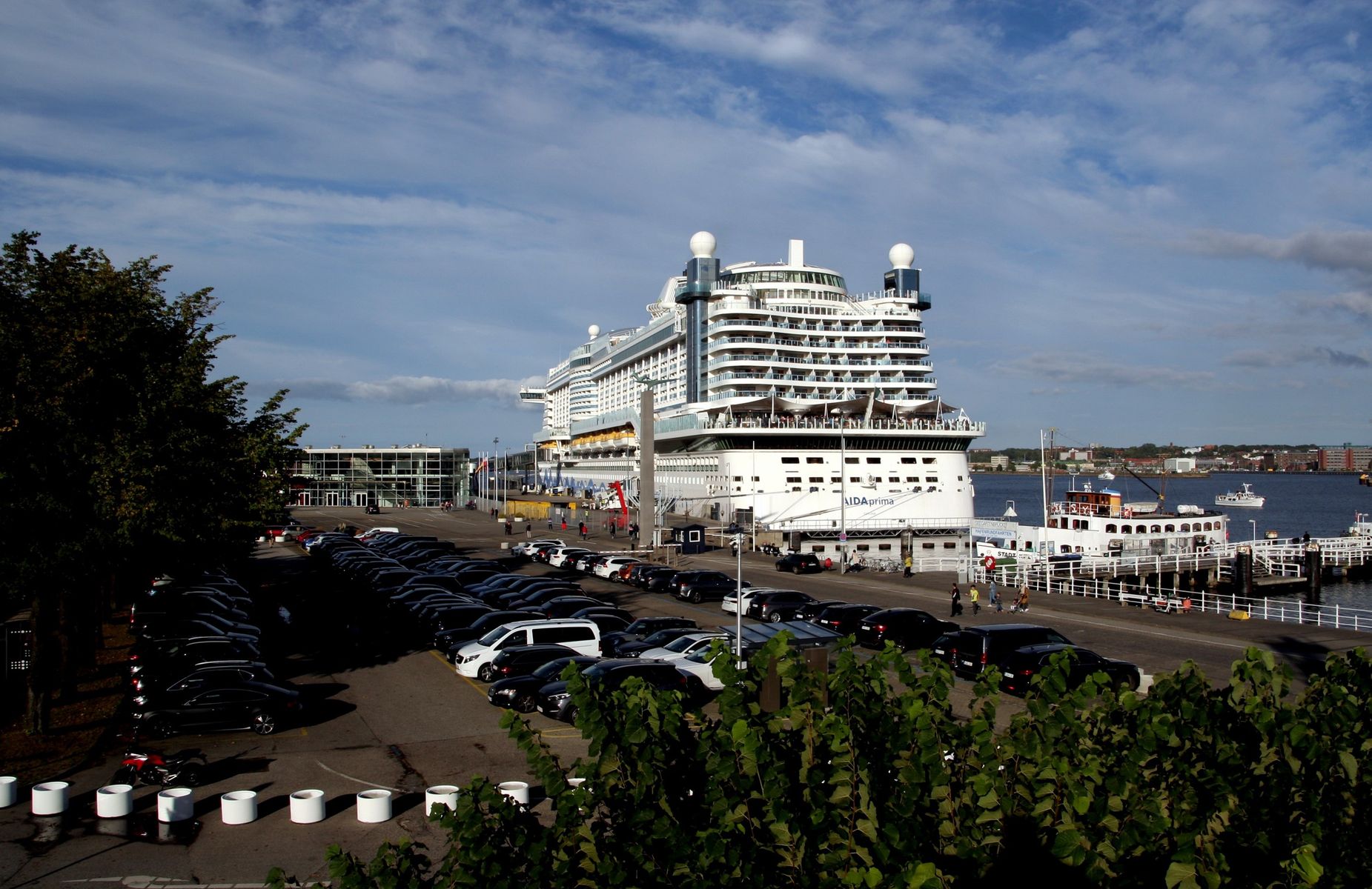 Die AIDAprima wartet am Ostseekai ganz geduldig auf das Auslaufmanöver der "Stena Germanica"