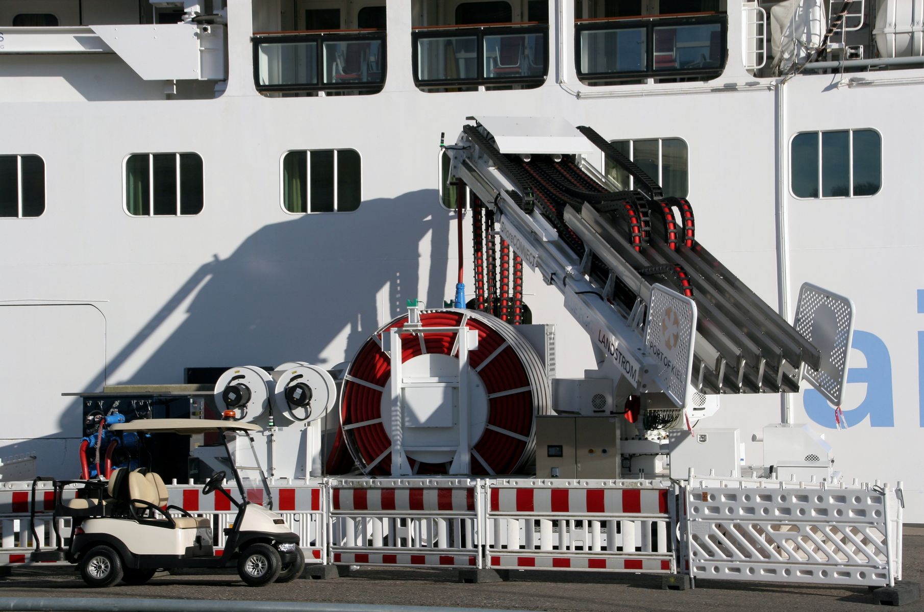 Der "Landanschluß" für die Stromversorgung der AIDAprima ist in Betrieb