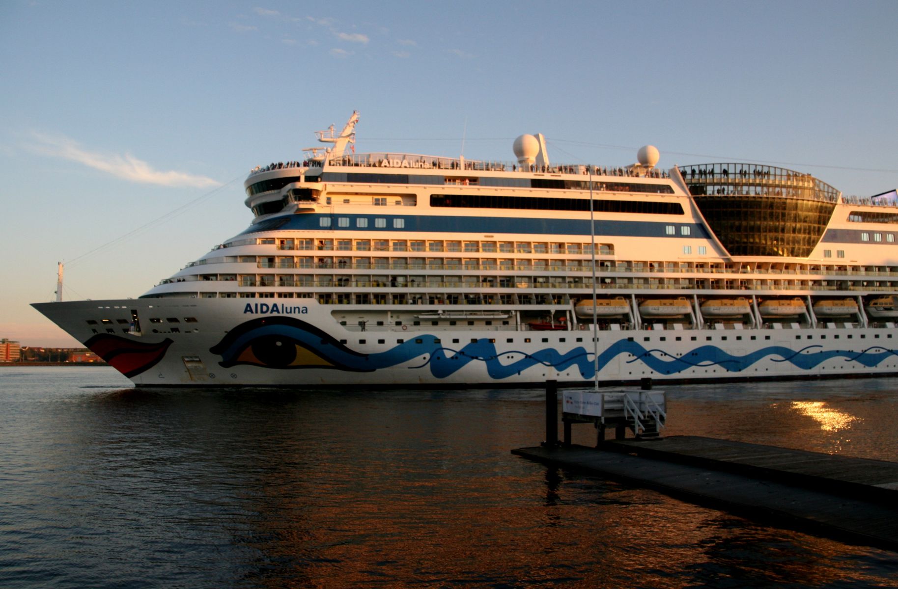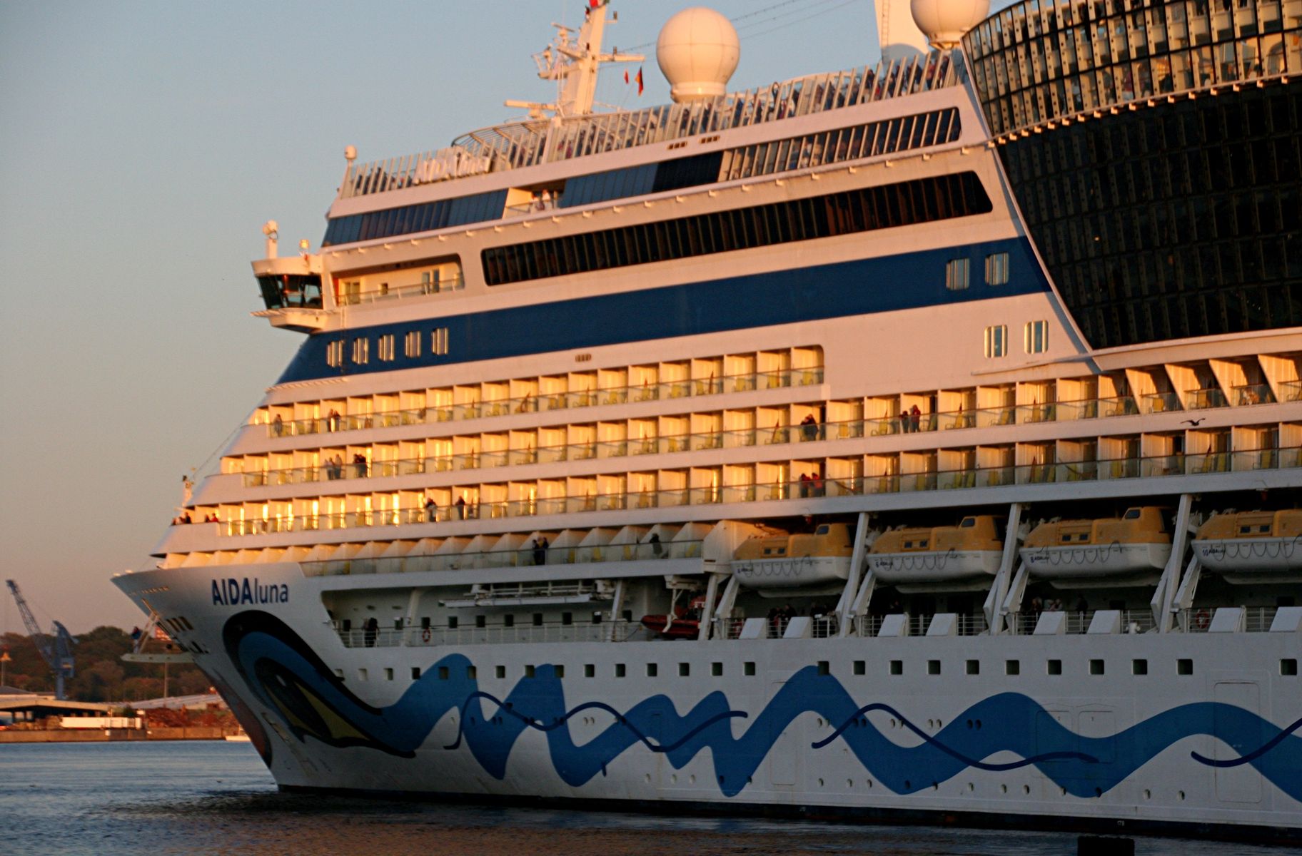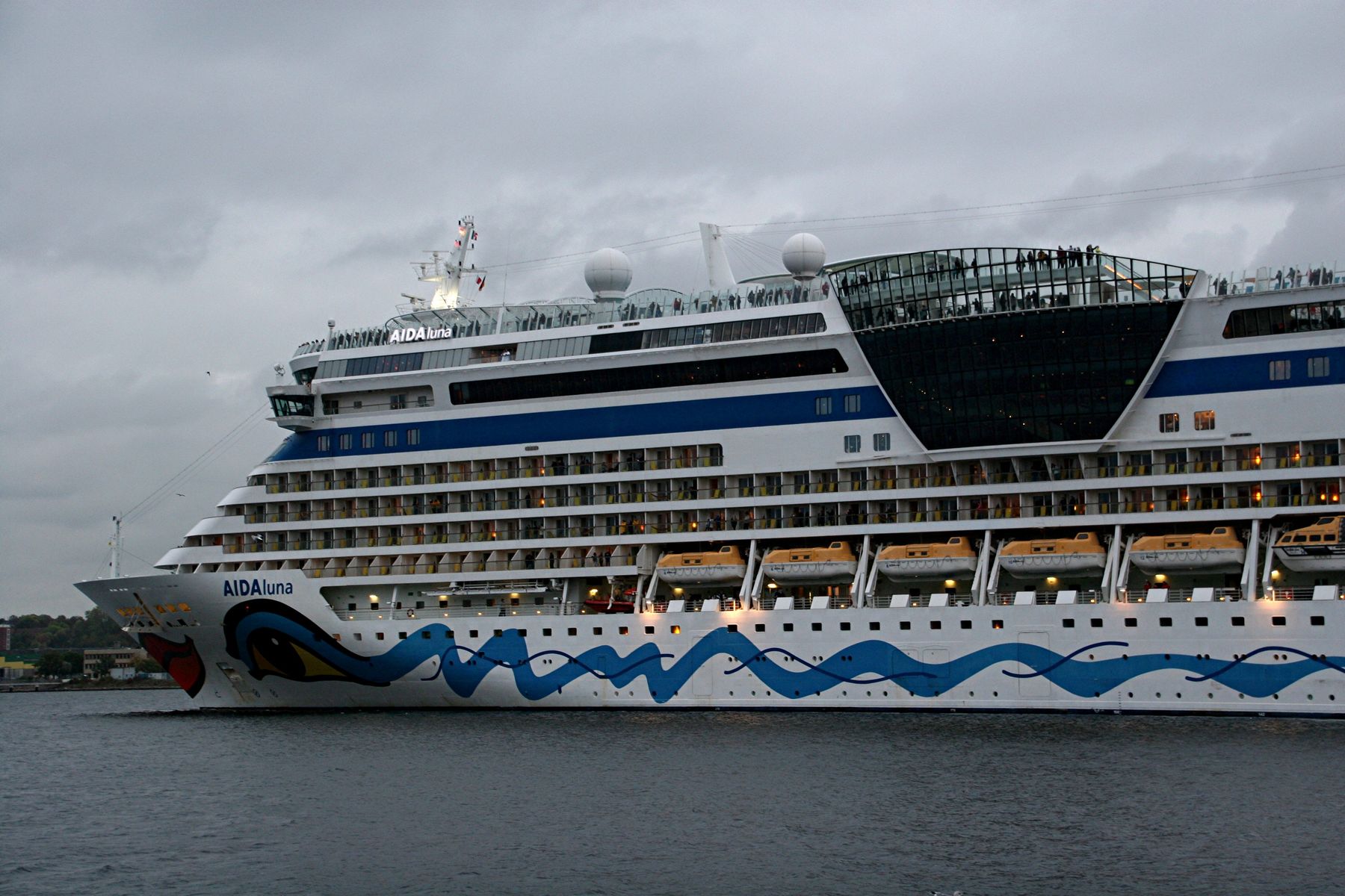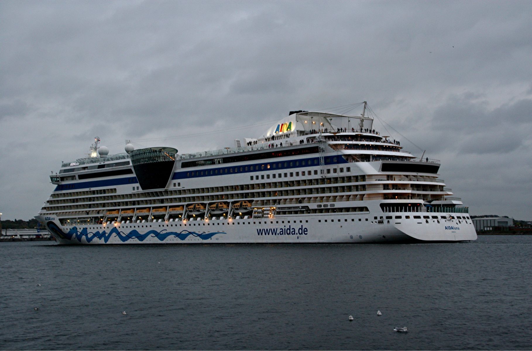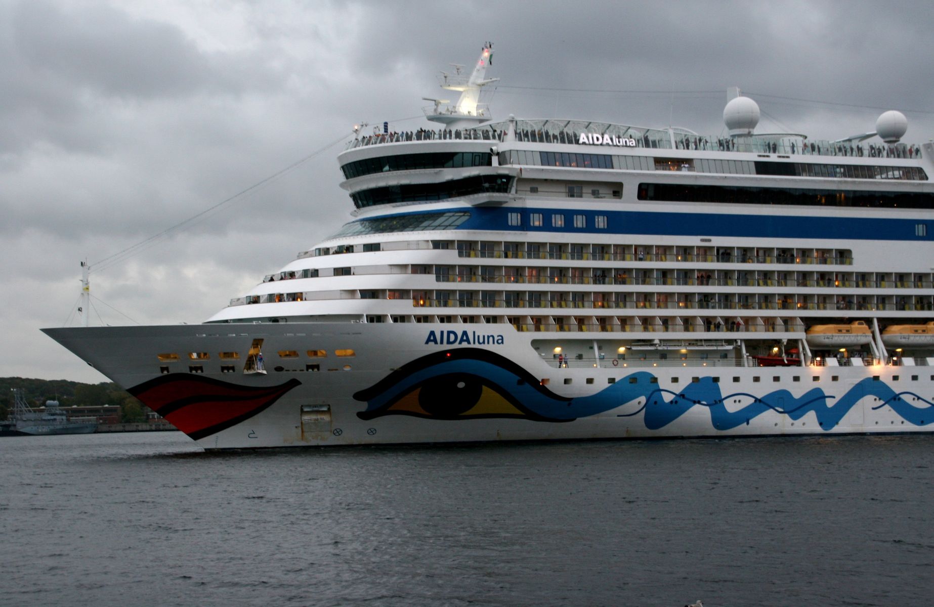 Die AIDAprima fährt um 18:23 h ihr Auslaufmanöver auf der "Kieler Förde"