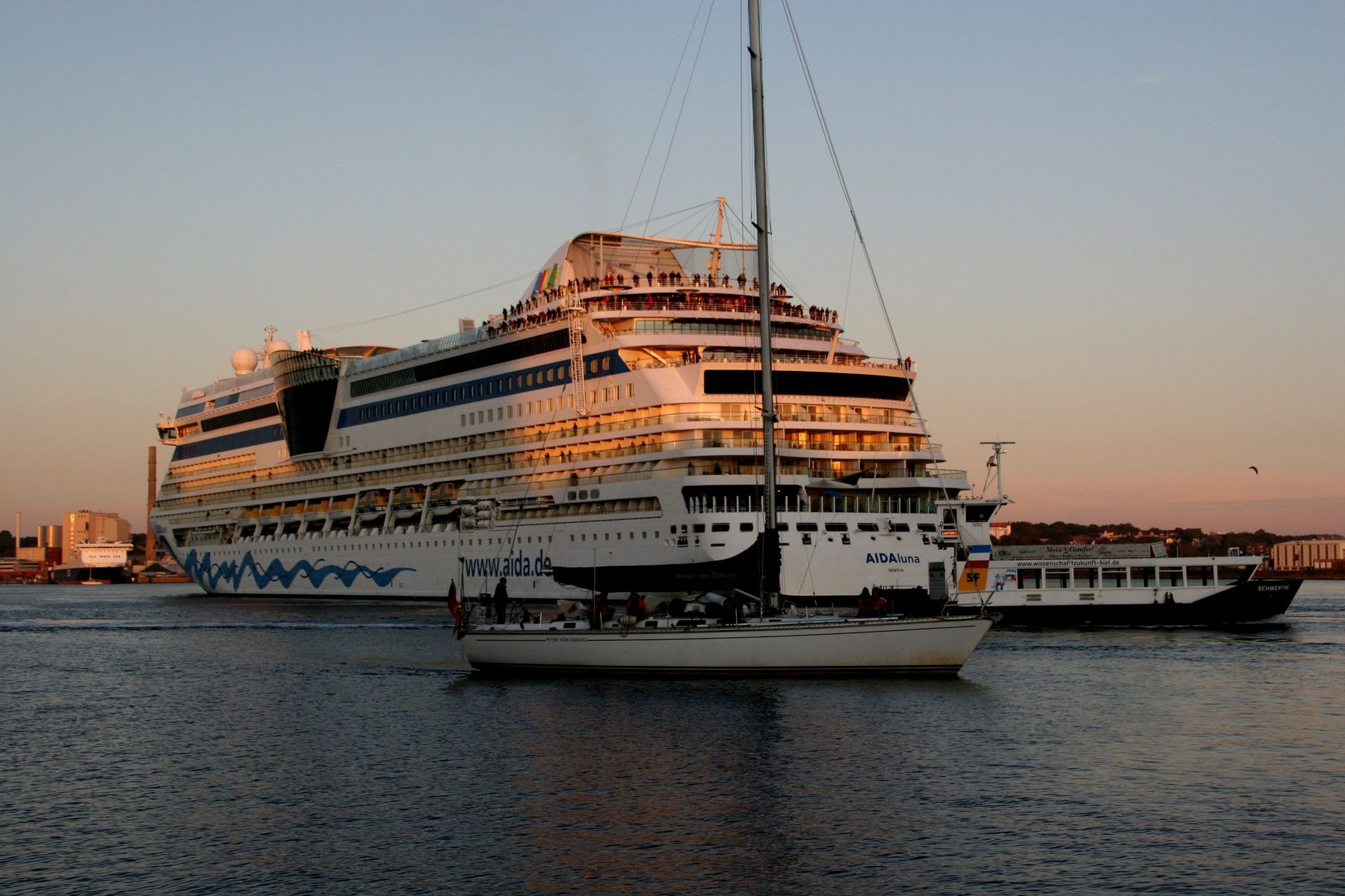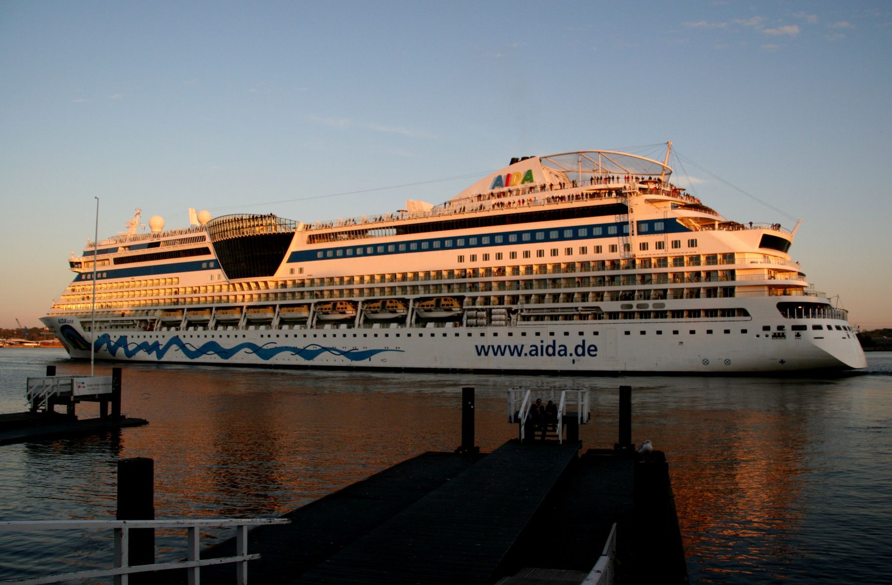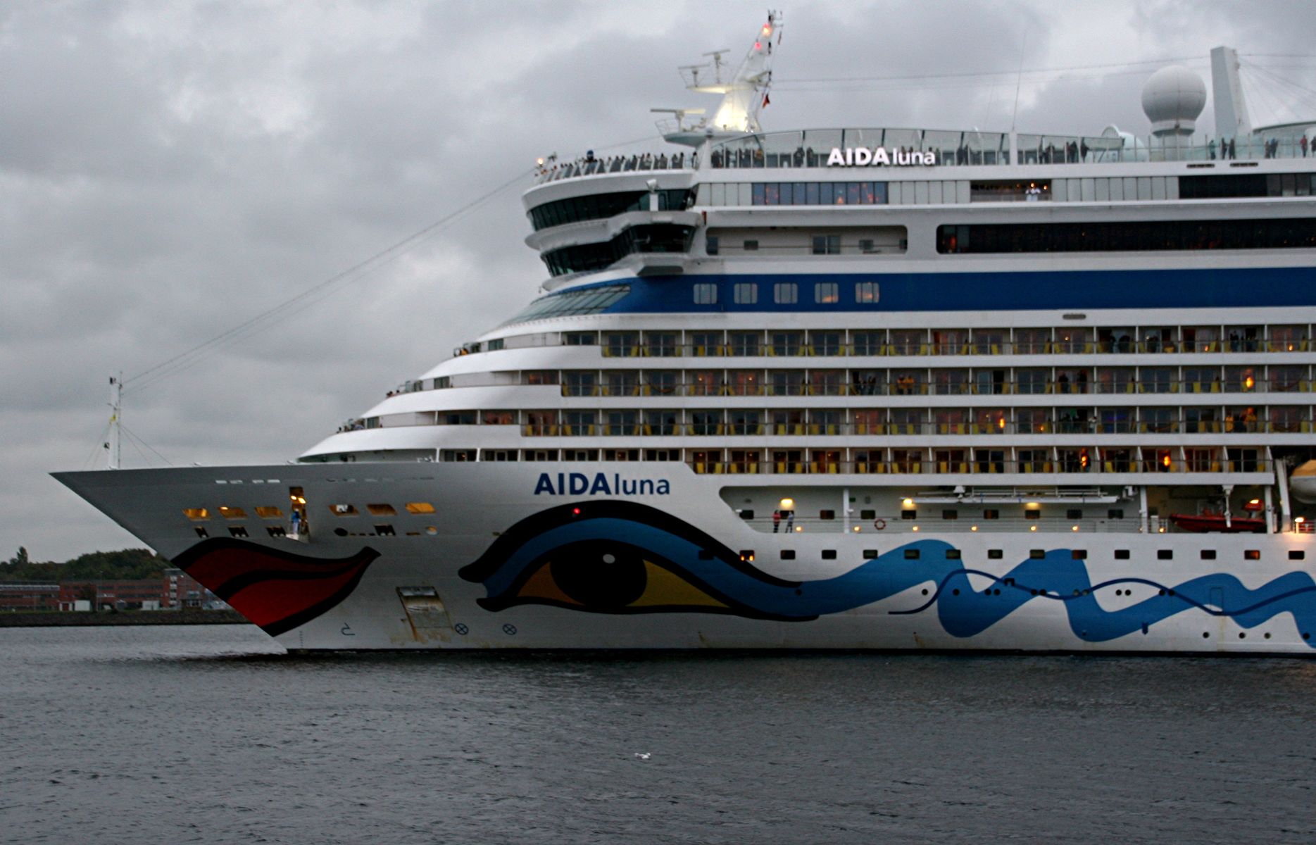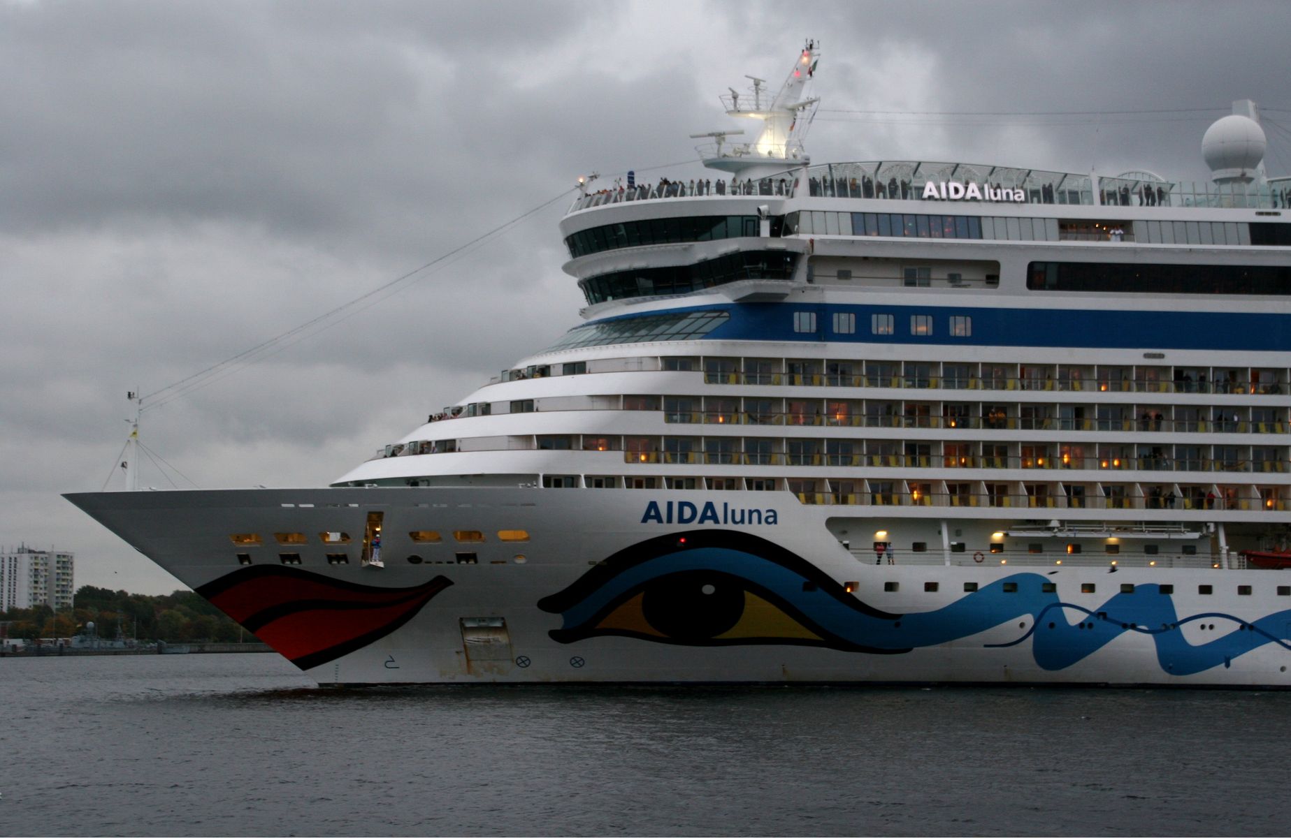 Die AIDAprima fährt um 18:23 h ihr Auslaufmanöver auf der "Kieler Förde"