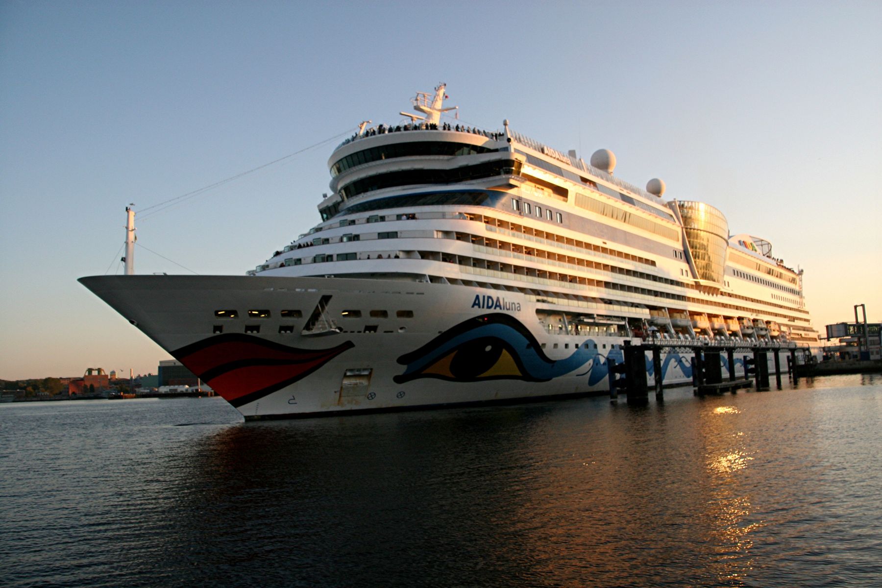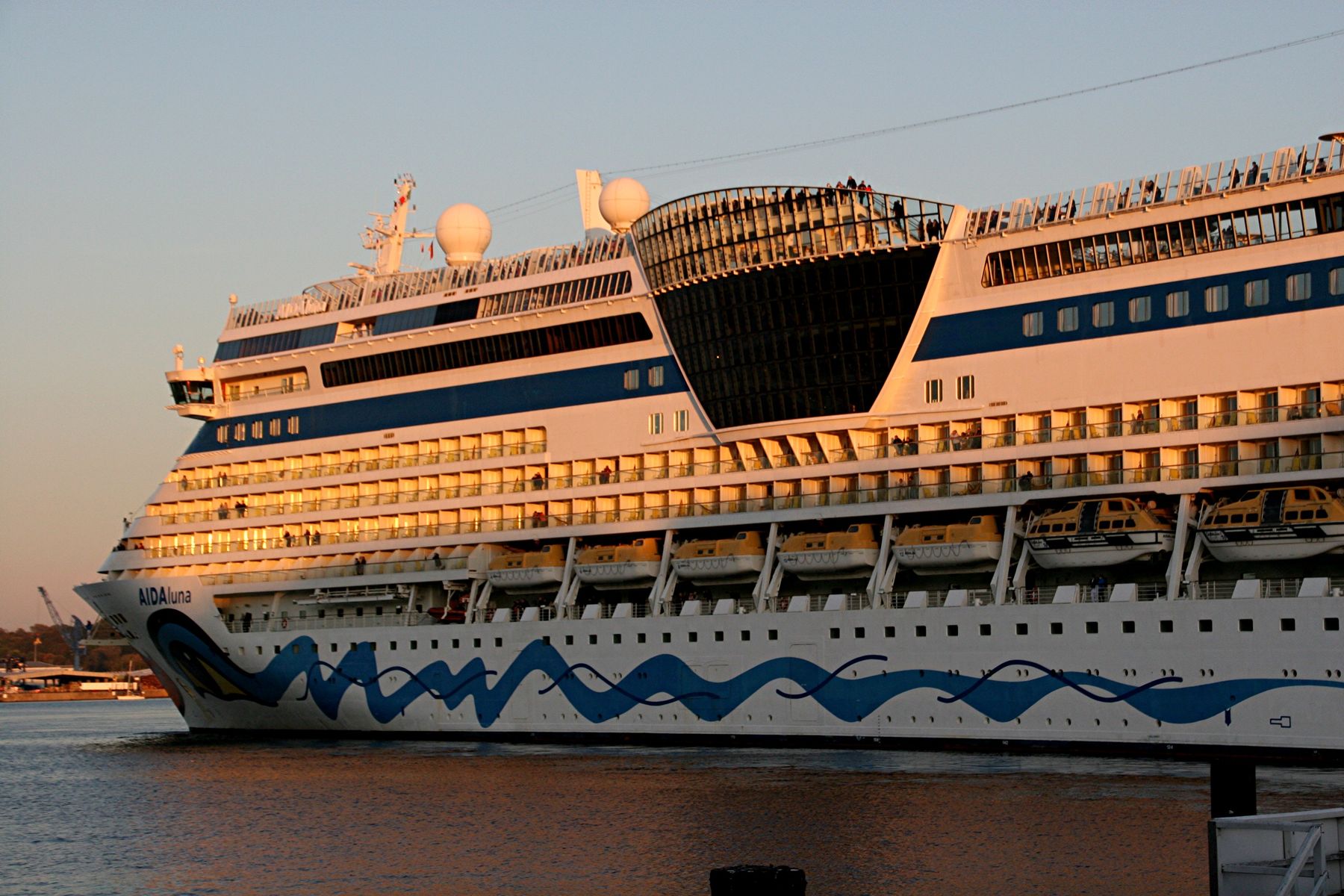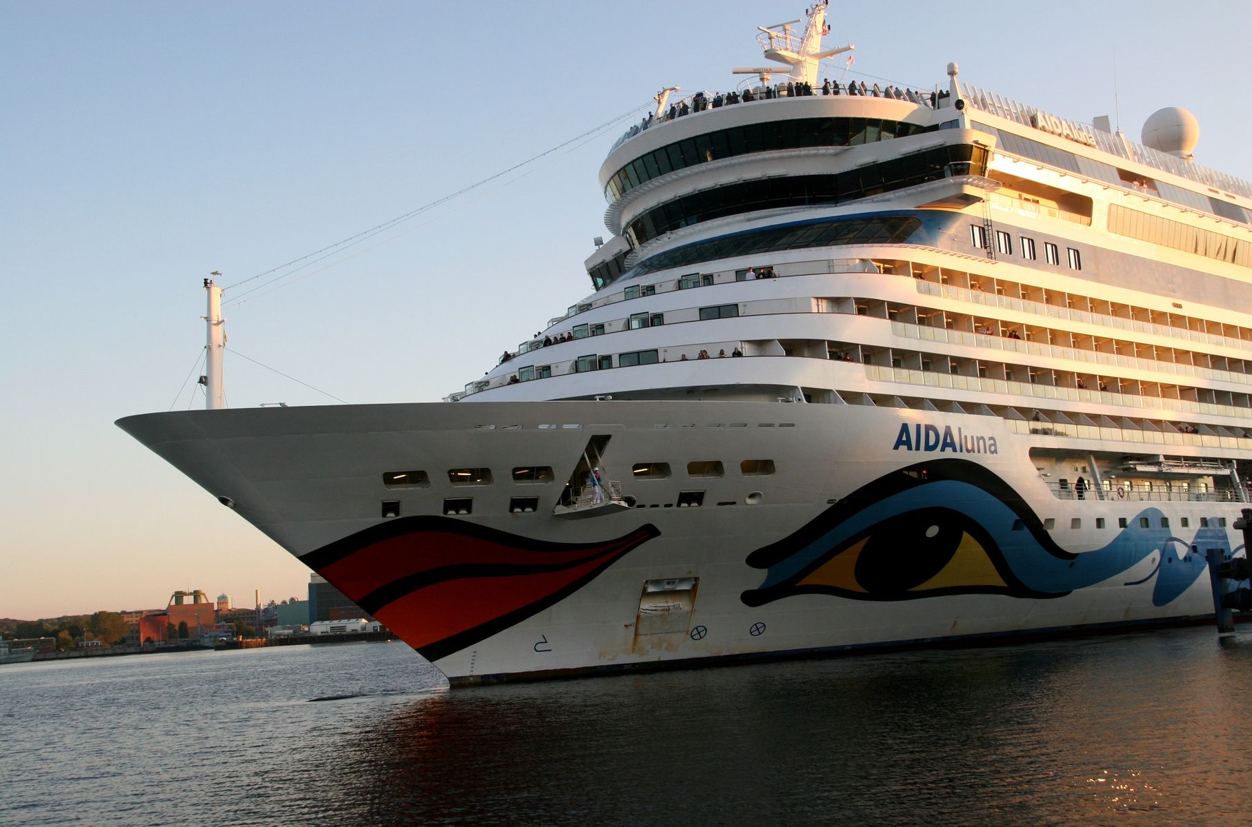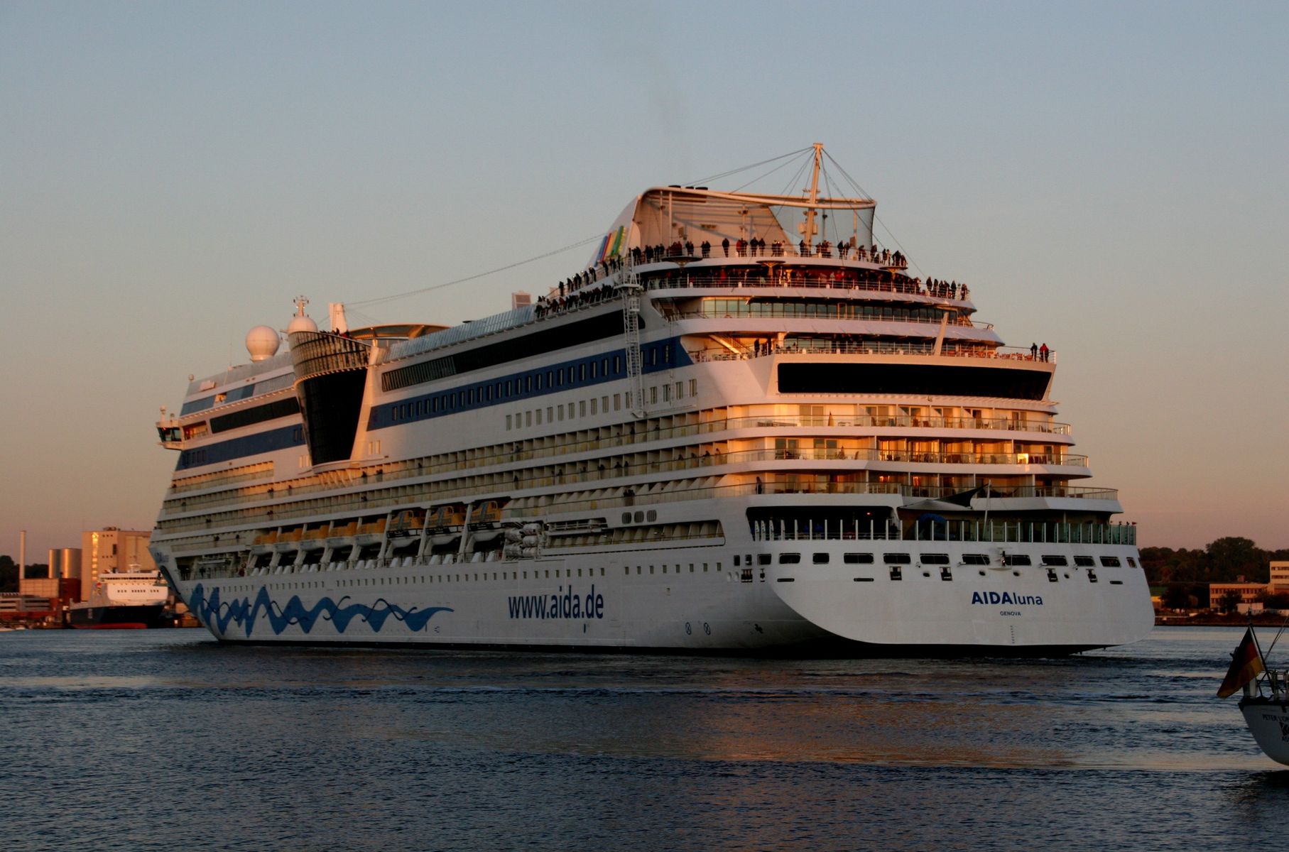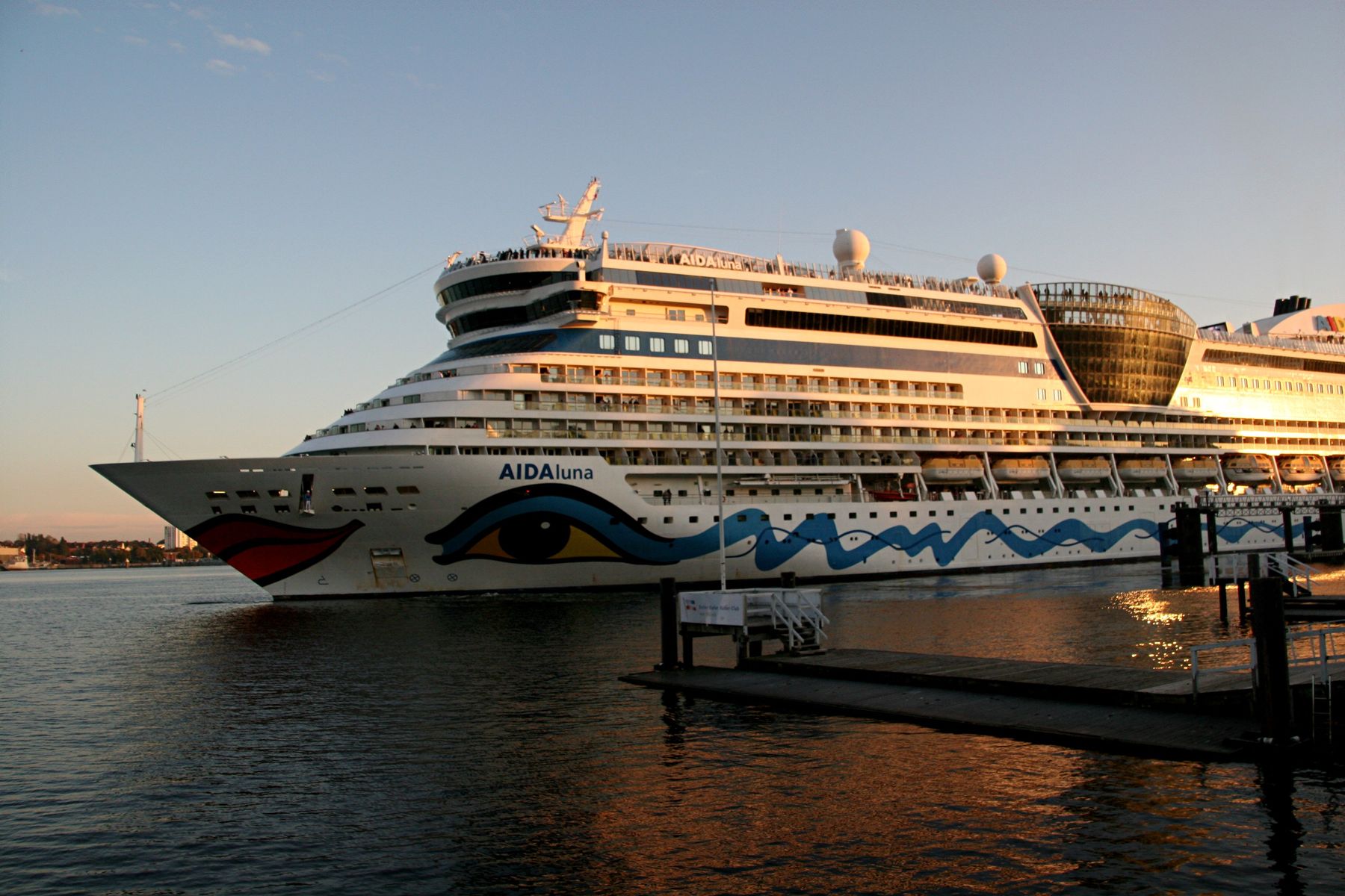 Die AIDAprima fährt um 18:23 h ihr Auslaufmanöver auf der "Kieler Förde"
