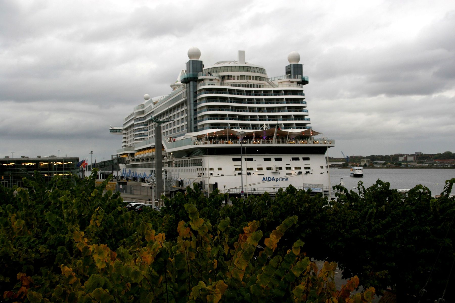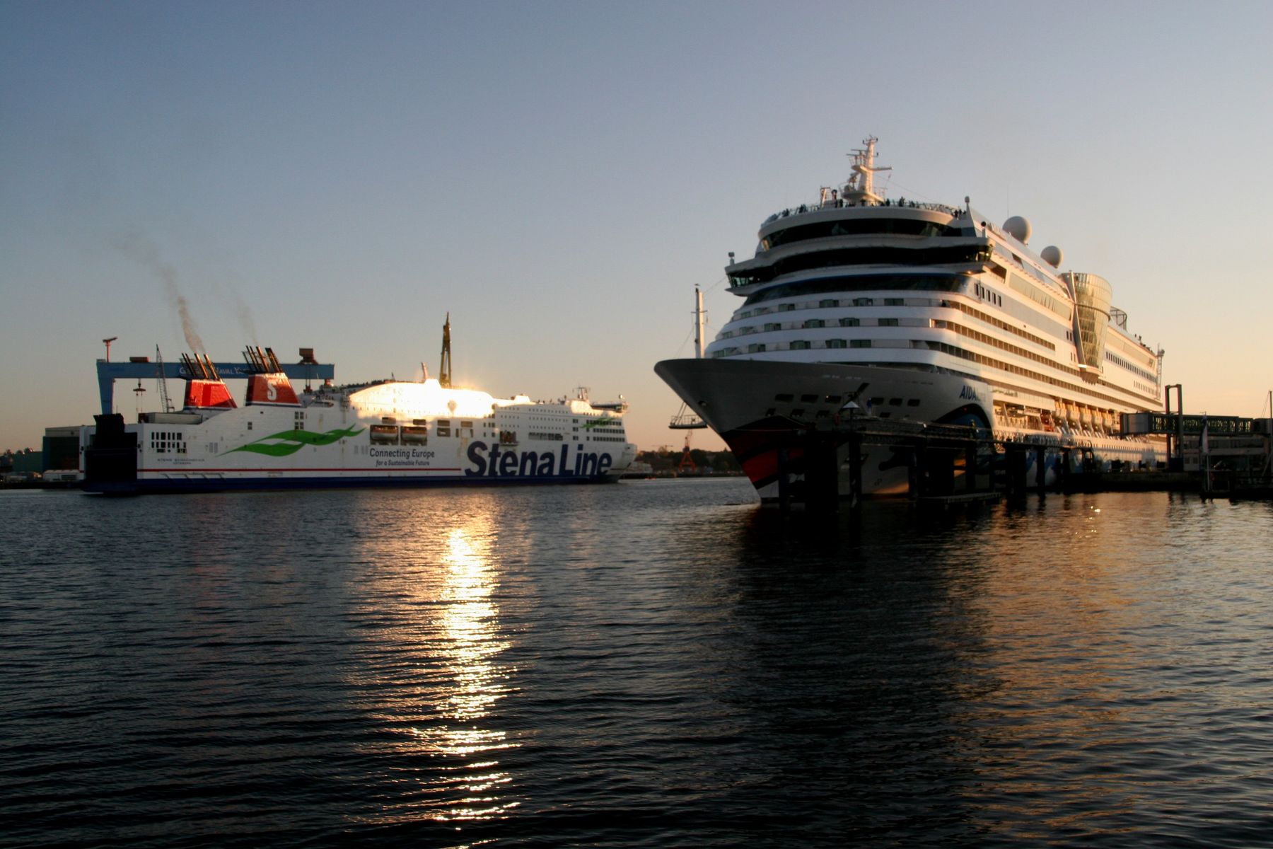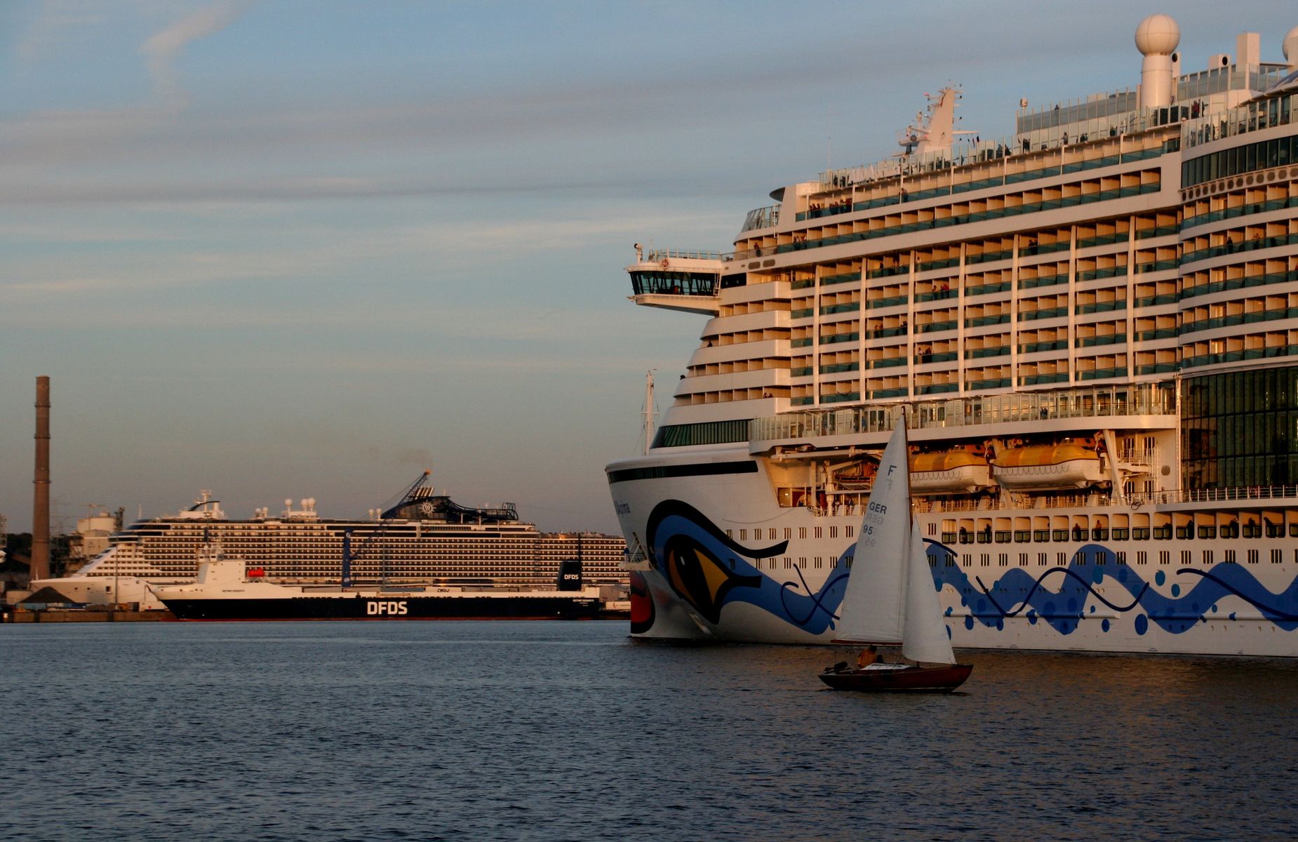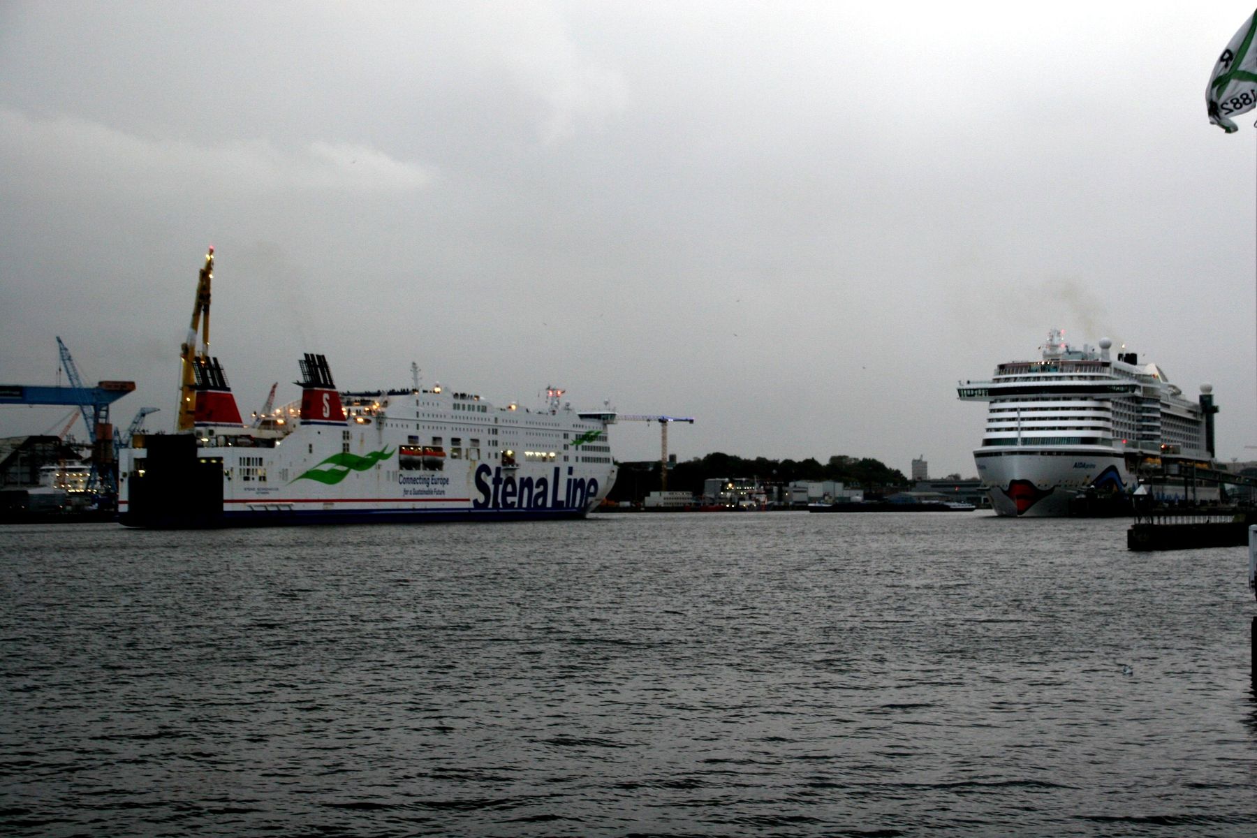 Die AIDAprima wartet am Ostseekai ganz geduldig auf das Auslaufmanöver der "Stena Scandinavica"