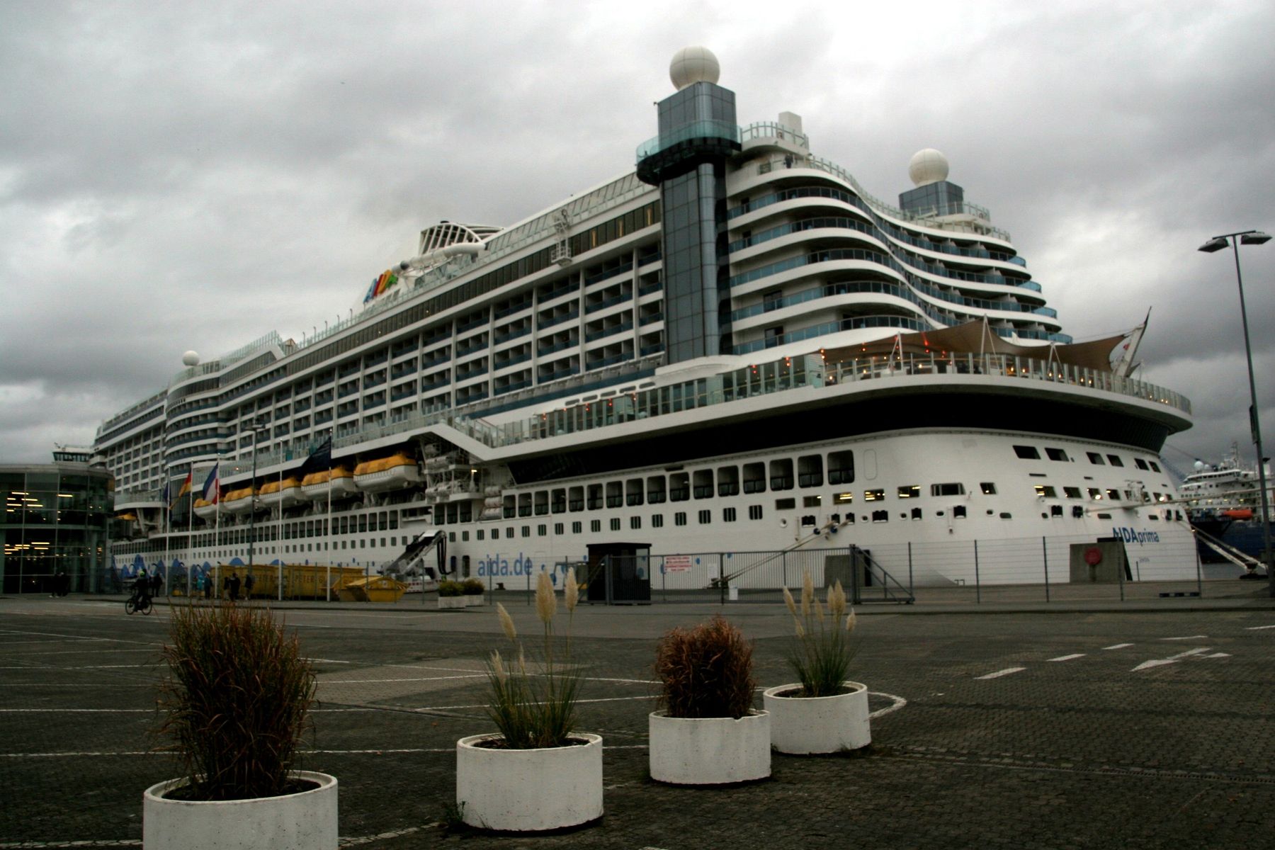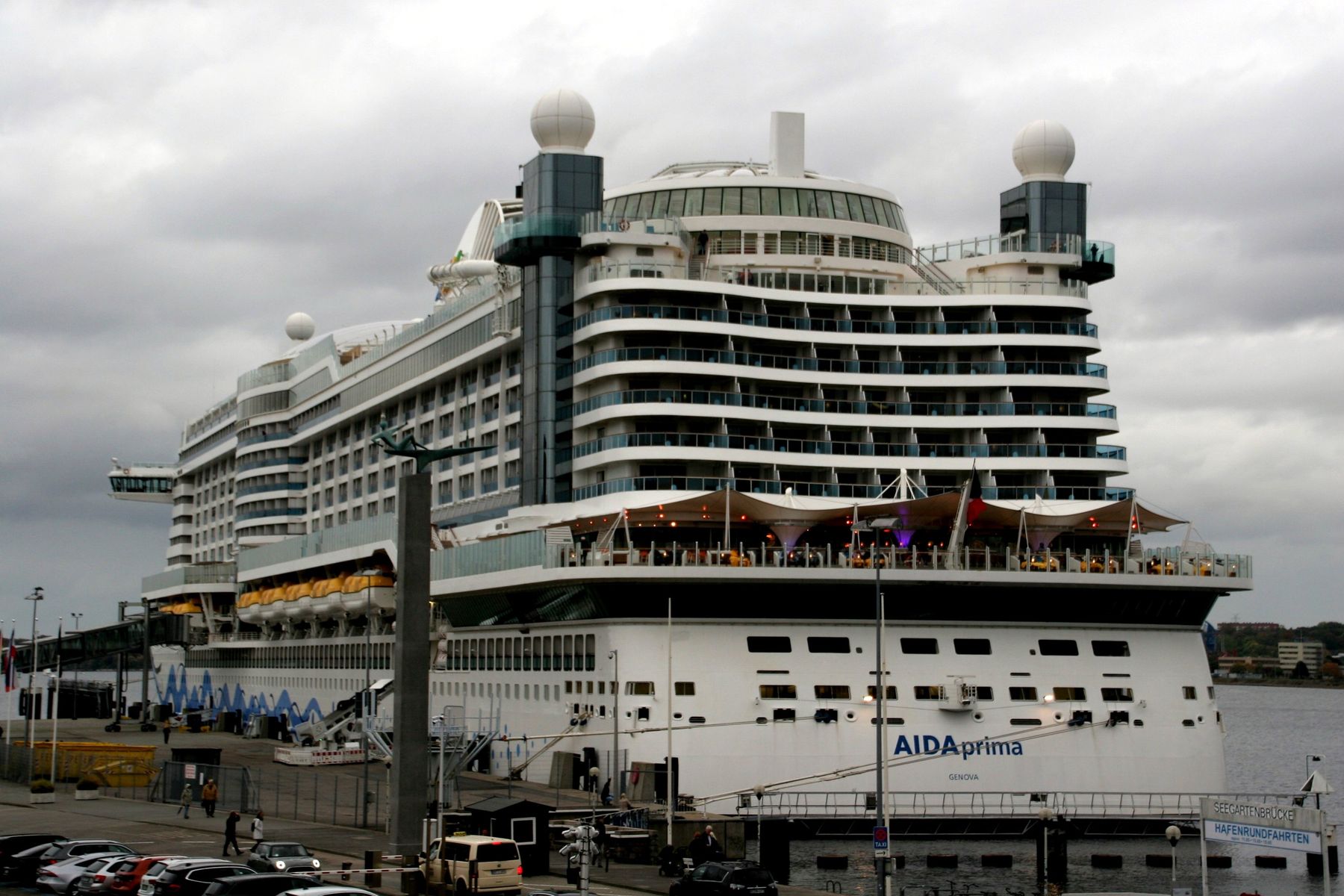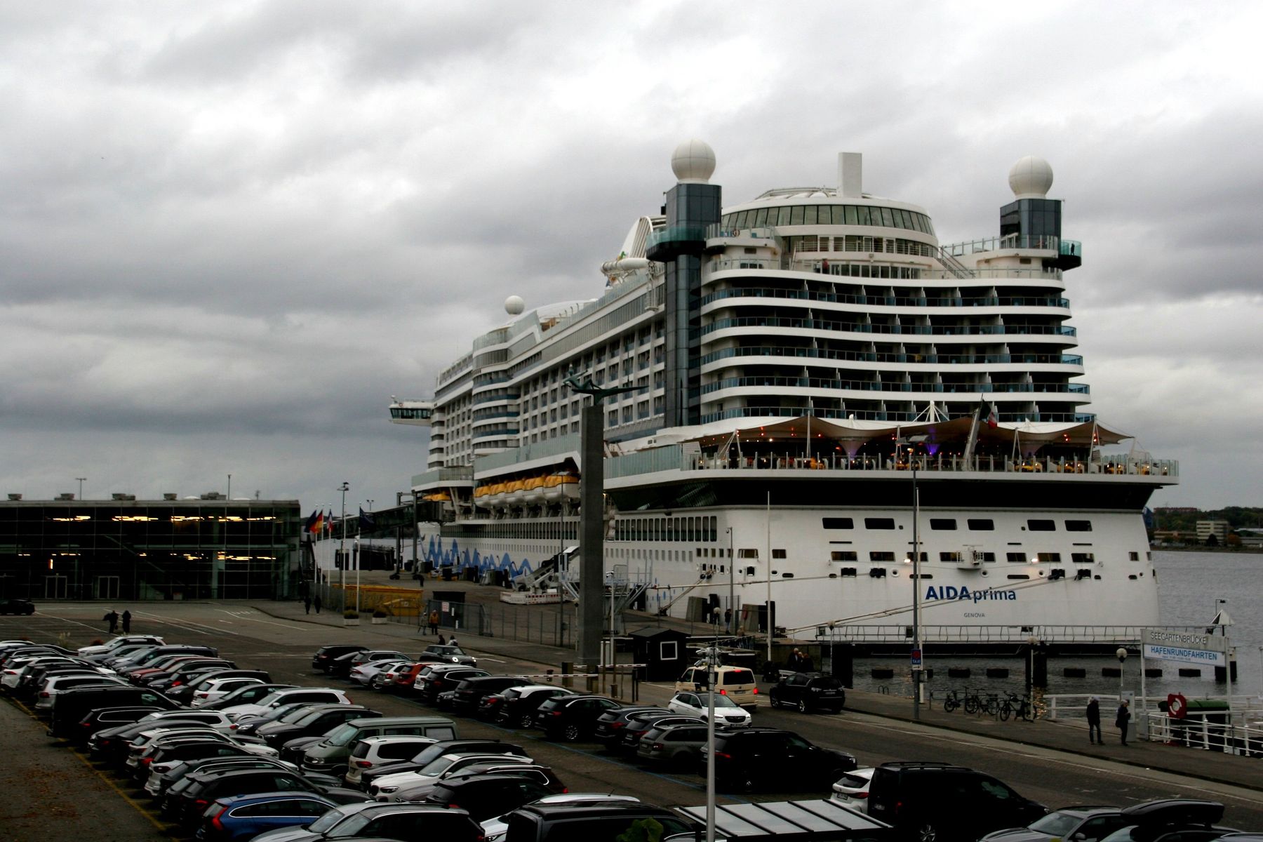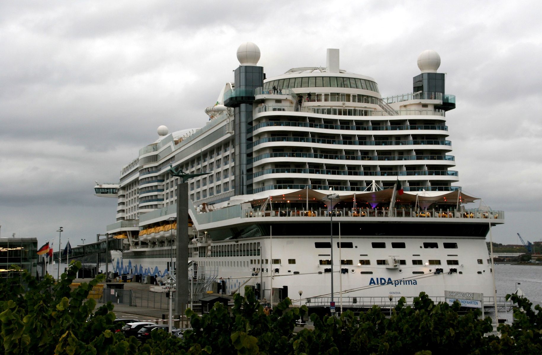 Die AIDAprima wartet am Ostseekai ganz geduldig auf das Auslaufmanöver der "Stena Scandinavica"