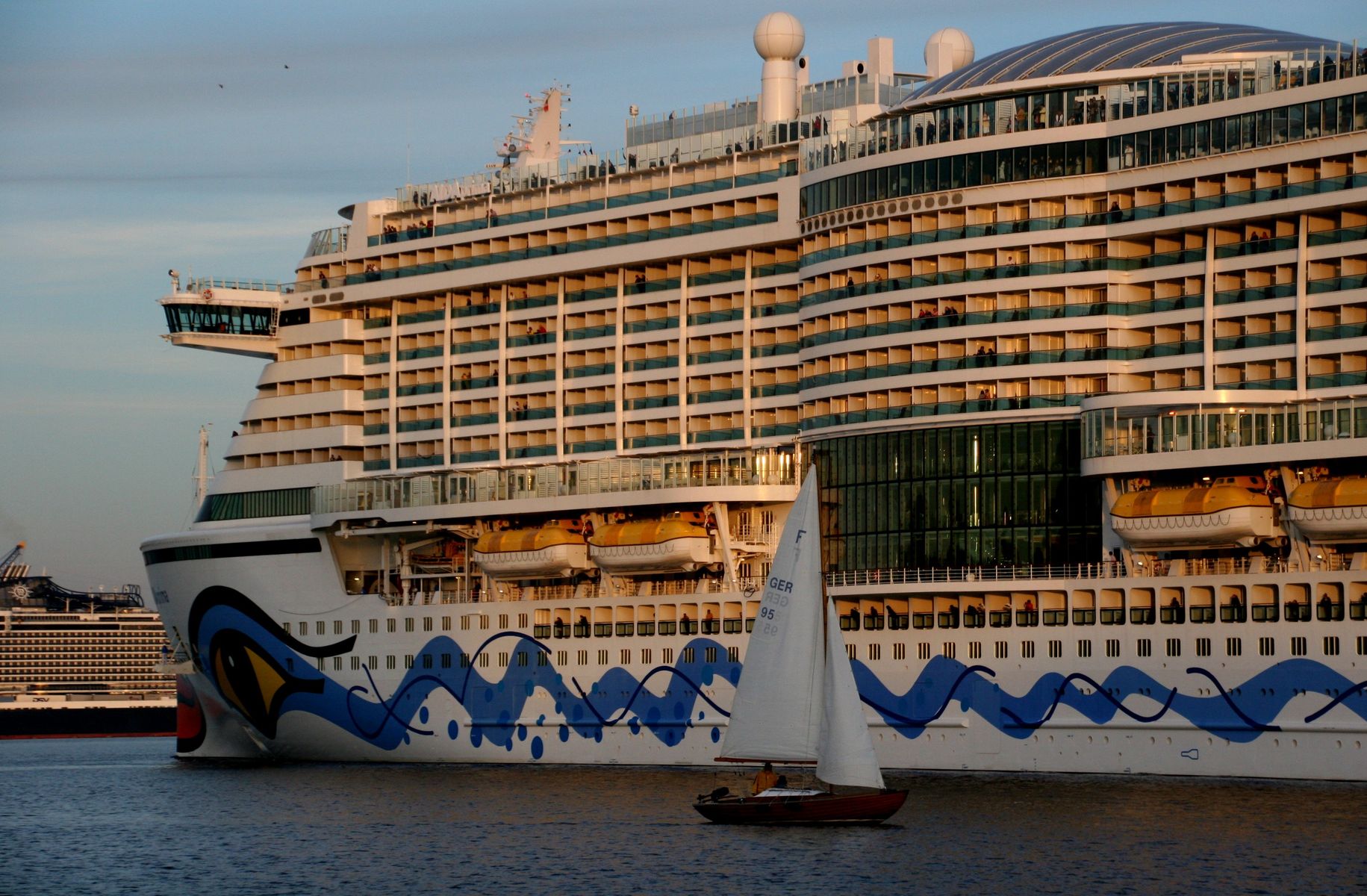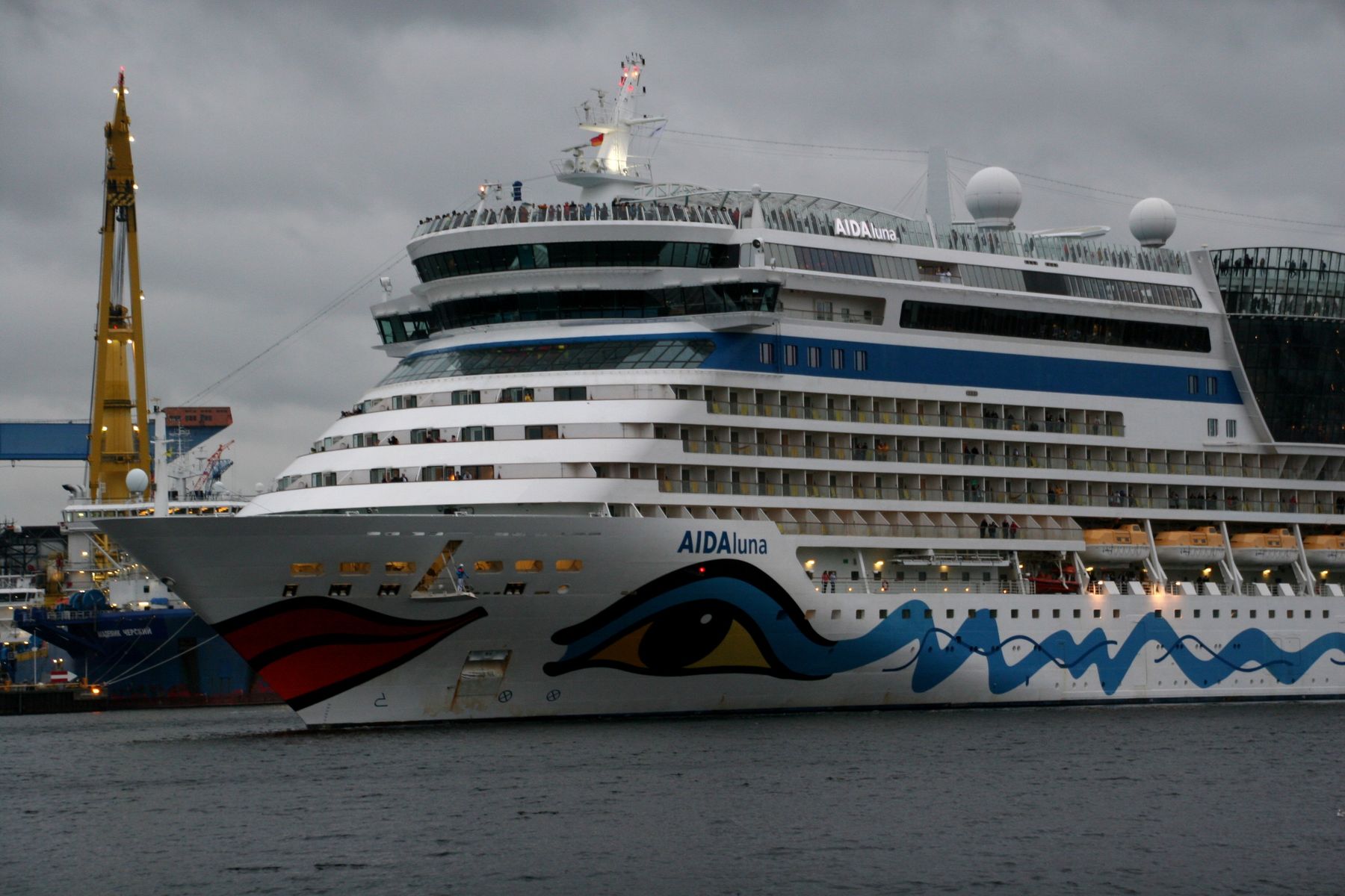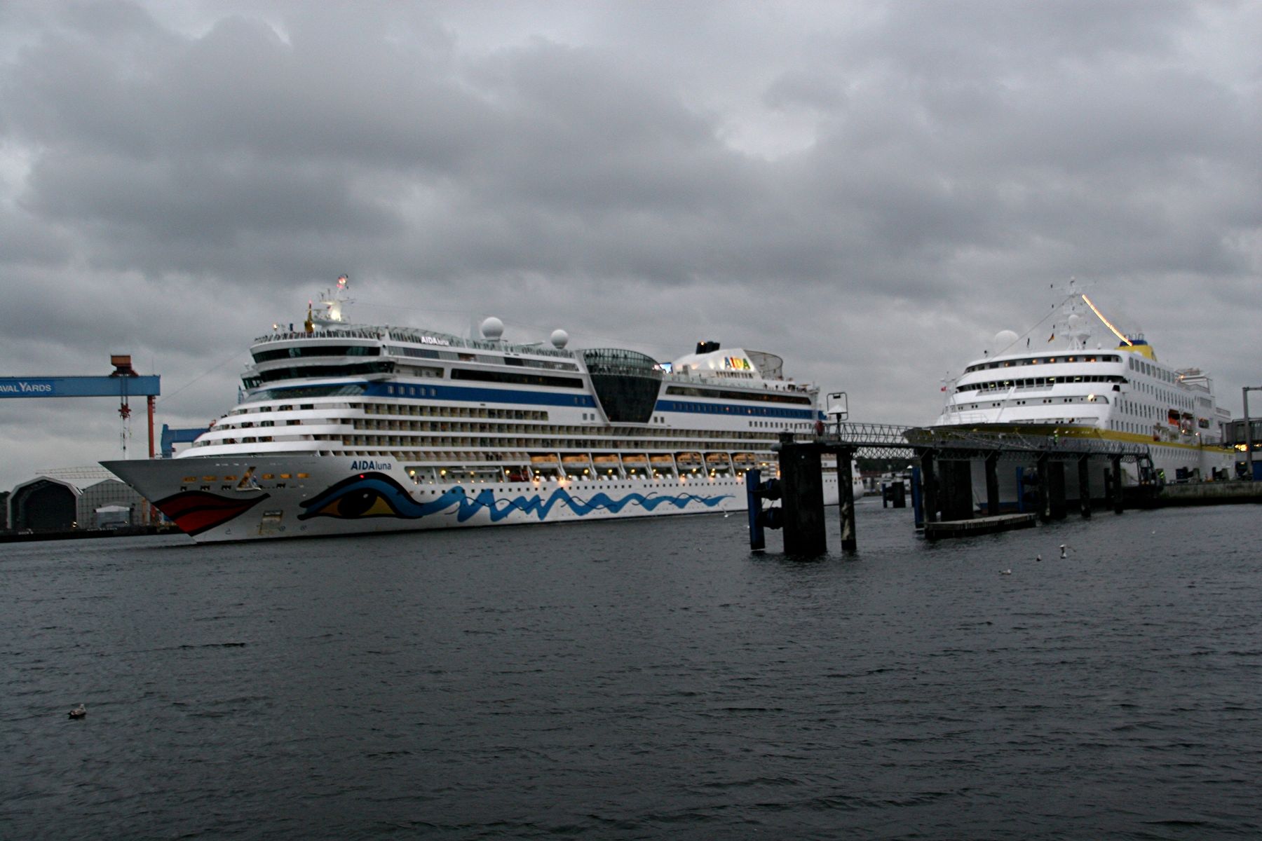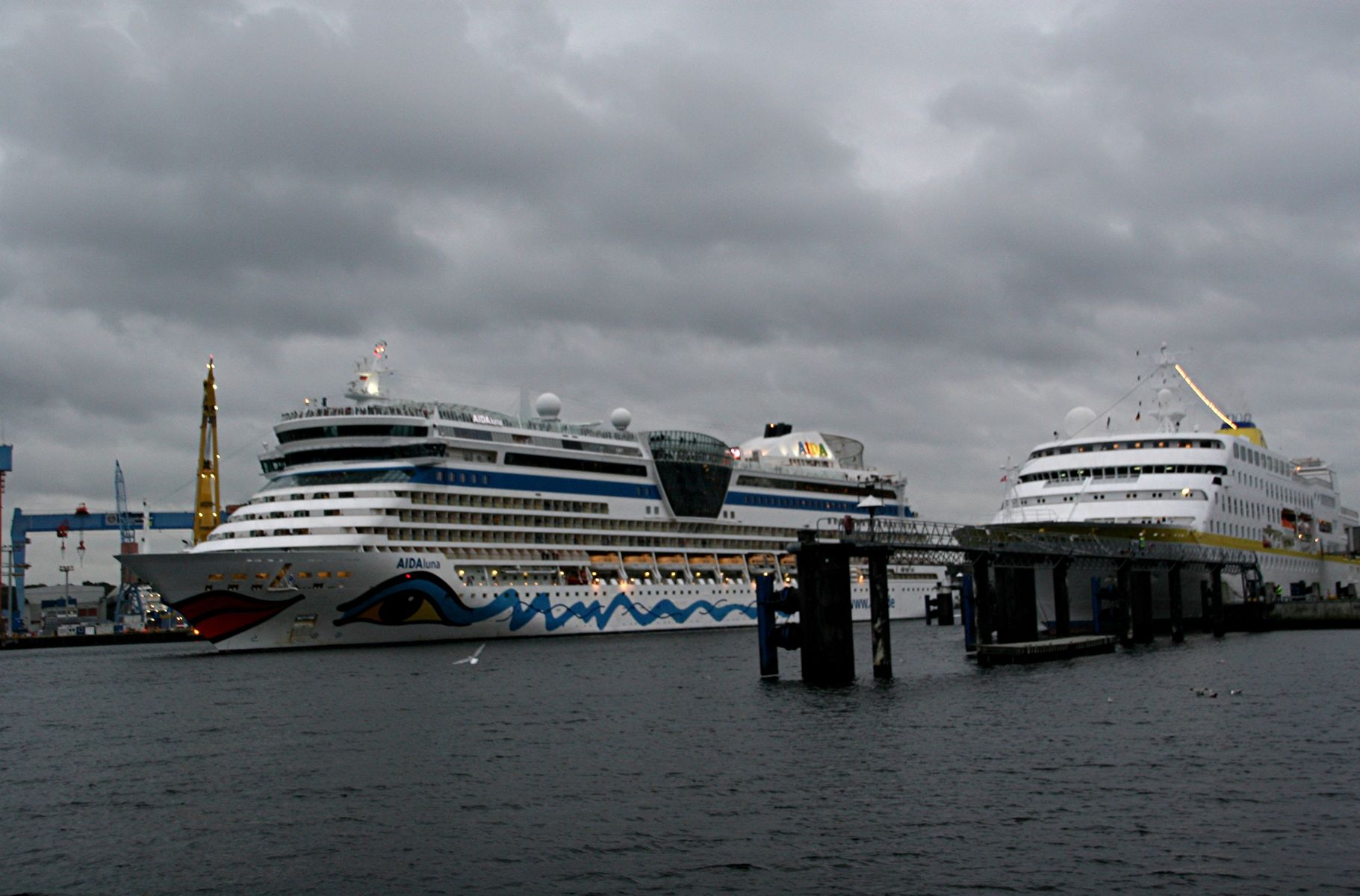 Die AIDAprima wartet am Ostseekai ganz geduldig auf das Auslaufmanöver der "Stena Scandinavica"